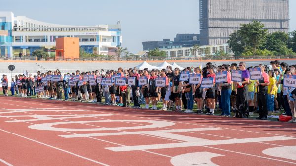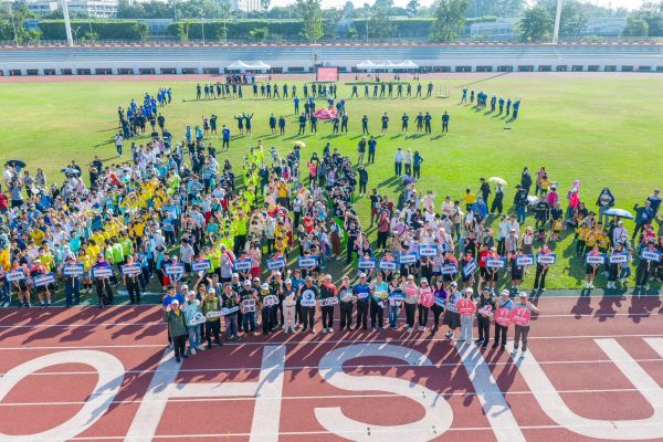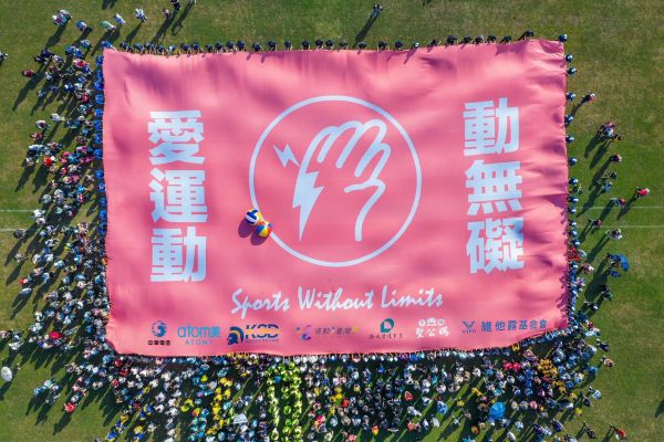 圖說8:上千名師生與市民共同撐起巨幅「愛運動 動無礙」旗幟,象徵全民齊心推動身心障礙運動平權,以熱情行動傳遞「Sports Without Limits」的精神。