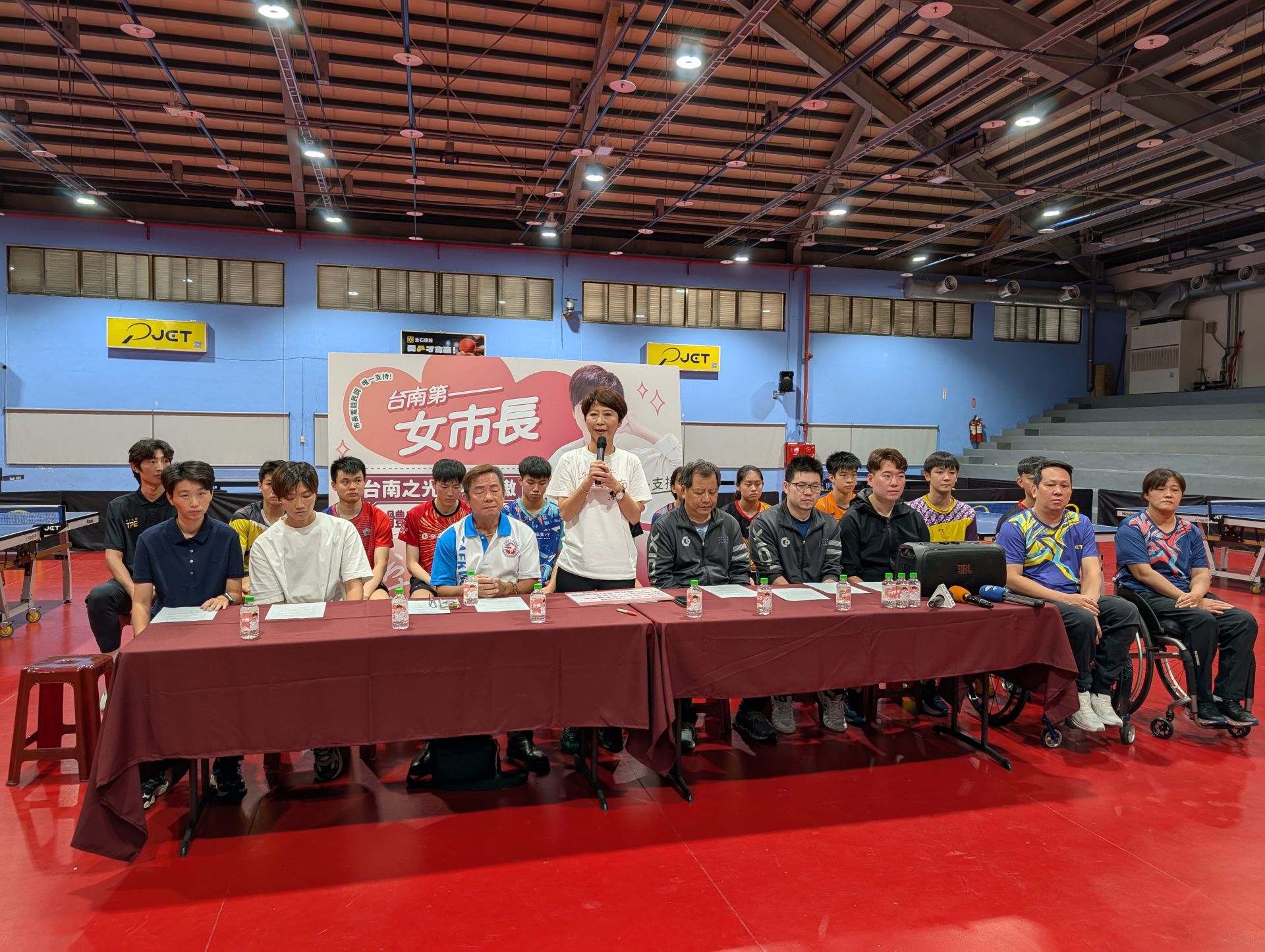 台灣桌球再傳捷報!台南出身的桌球雙將馮翊新、郭冠宏勇奪WTT倫敦球星挑戰賽男雙冠軍,2024巴黎帕運桌球男子銀牌選手程銘志特別出席這些國手都是在國際舞台上大放異彩。民進黨立法委員陳亭妃今(3)日邀集台南優秀桌球與跆拳道選手、教練舉行記者會,恭賀台南選手表現亮眼,也提出完整體育人才政策藍圖,強調「台灣不是沒有人才,是需要完整支持計劃來挺運動選手。」