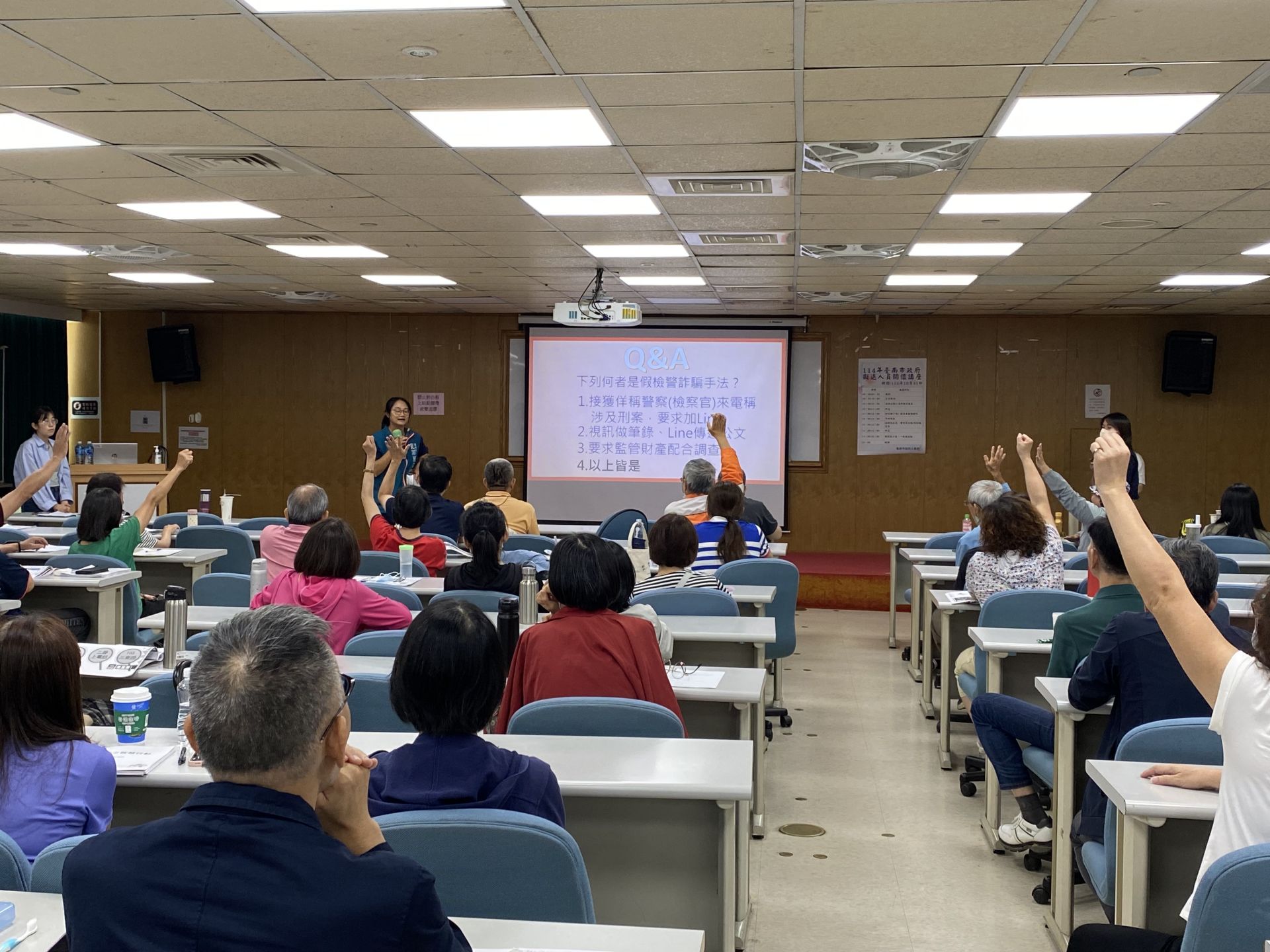 臺南市政府人事處結合臺南市政府警察局於今年辦理2場次「擬退人員關懷講座」(5月、10月各1場次),協助即將退休的市府公務人員提升防詐意識,認識常見詐欺手法、結合時事議題的詐騙案類及防制對策,由南市警局講師進行防制詐騙專題宣講,期許擬退同仁能透過新聞時事與實務解析,建立正確的防詐觀念,守護個人財產安全。