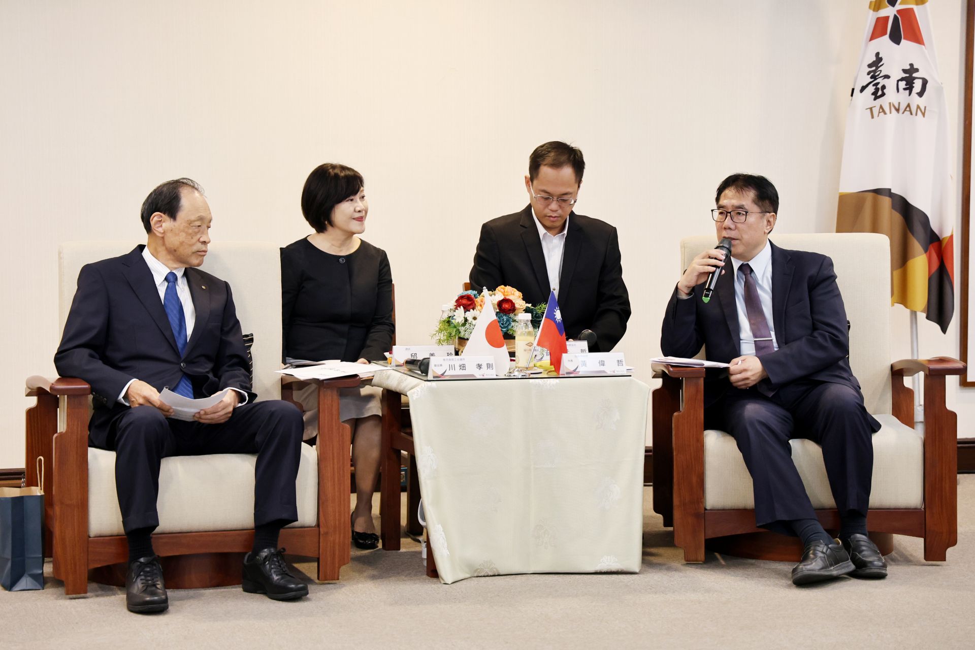▲市長黃偉哲與川畑孝則副會頭針對兩地商工業、觀光等交流事項深入討論。(記者黃雋淮 翻攝)