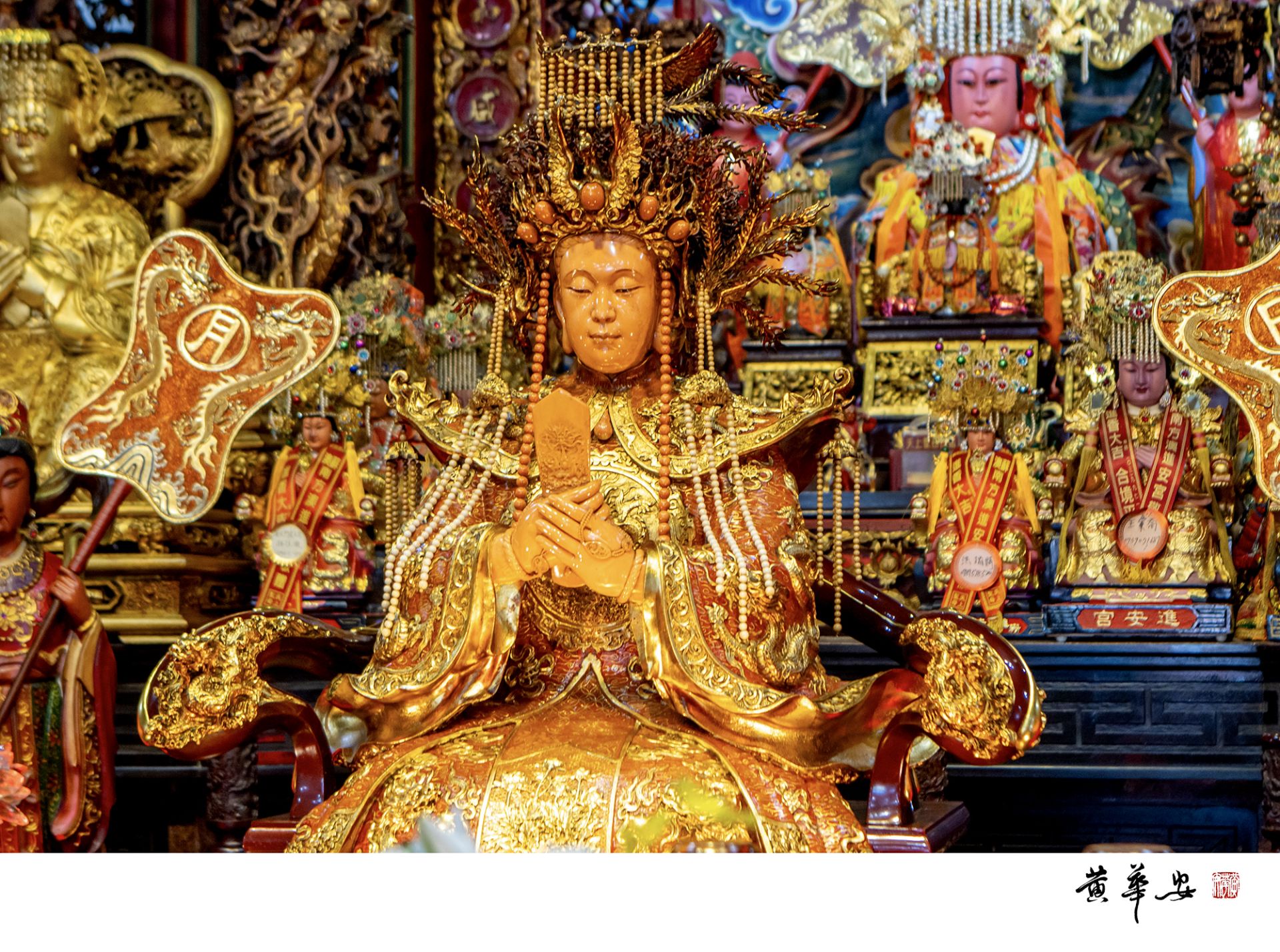 今(5日)清晨,宜蘭南方澳進安宮珊瑚媽祖神像上的黃金項鍊與珊瑚配件遭竊,損失逾3千萬,圖未遭竊前的全貌。(圖/記者黃華安攝)