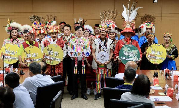 原民總頭目為市長穿戴傳統服飾 陳其邁:體驗原民文化之美 邀民眾參與豐潮活動