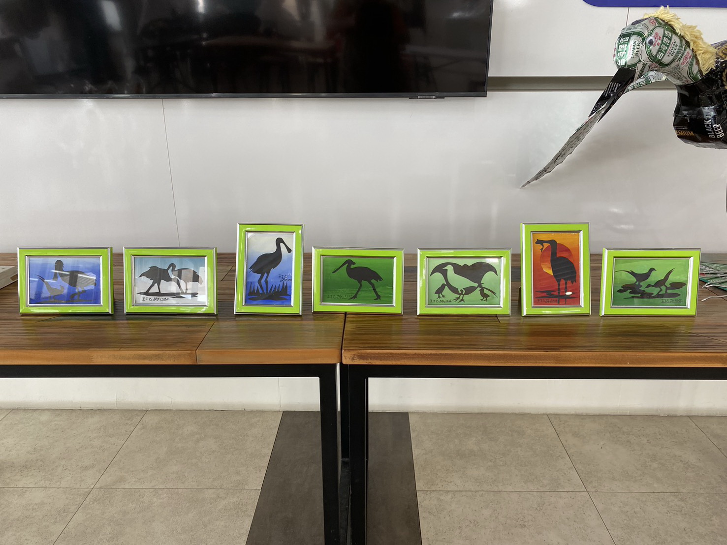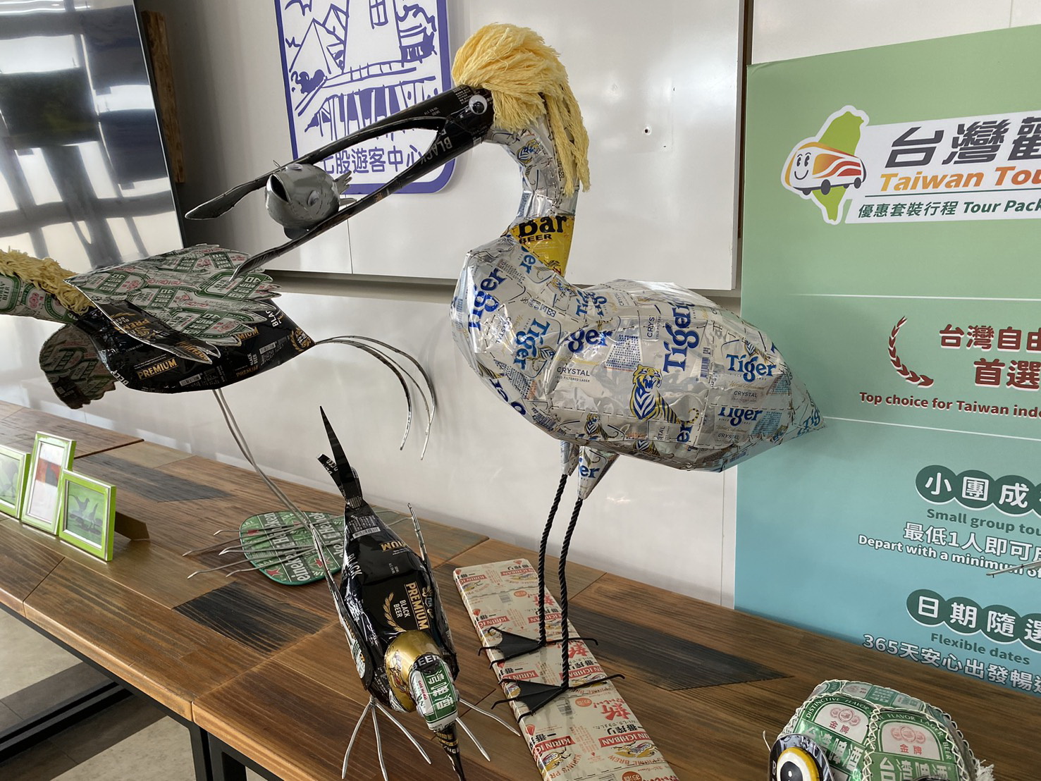 ▲吹糖人、剪紙人、鋁罐人、黑琵水雉3項展覽七股遊客中心16日開展。(記者黃雋淮 翻攝)