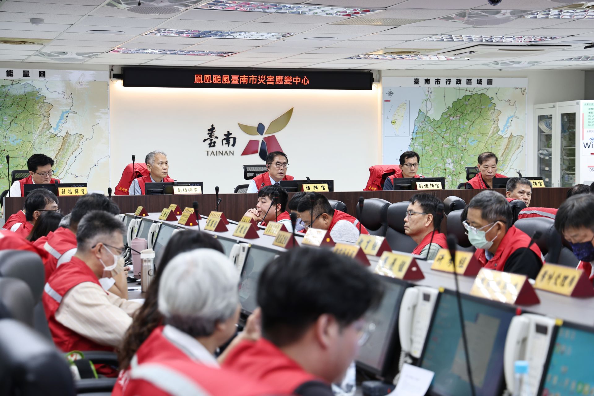 ▲市長黃偉哲主持鳳凰颱風防颱工作會報。(記者黃雋淮 翻攝)