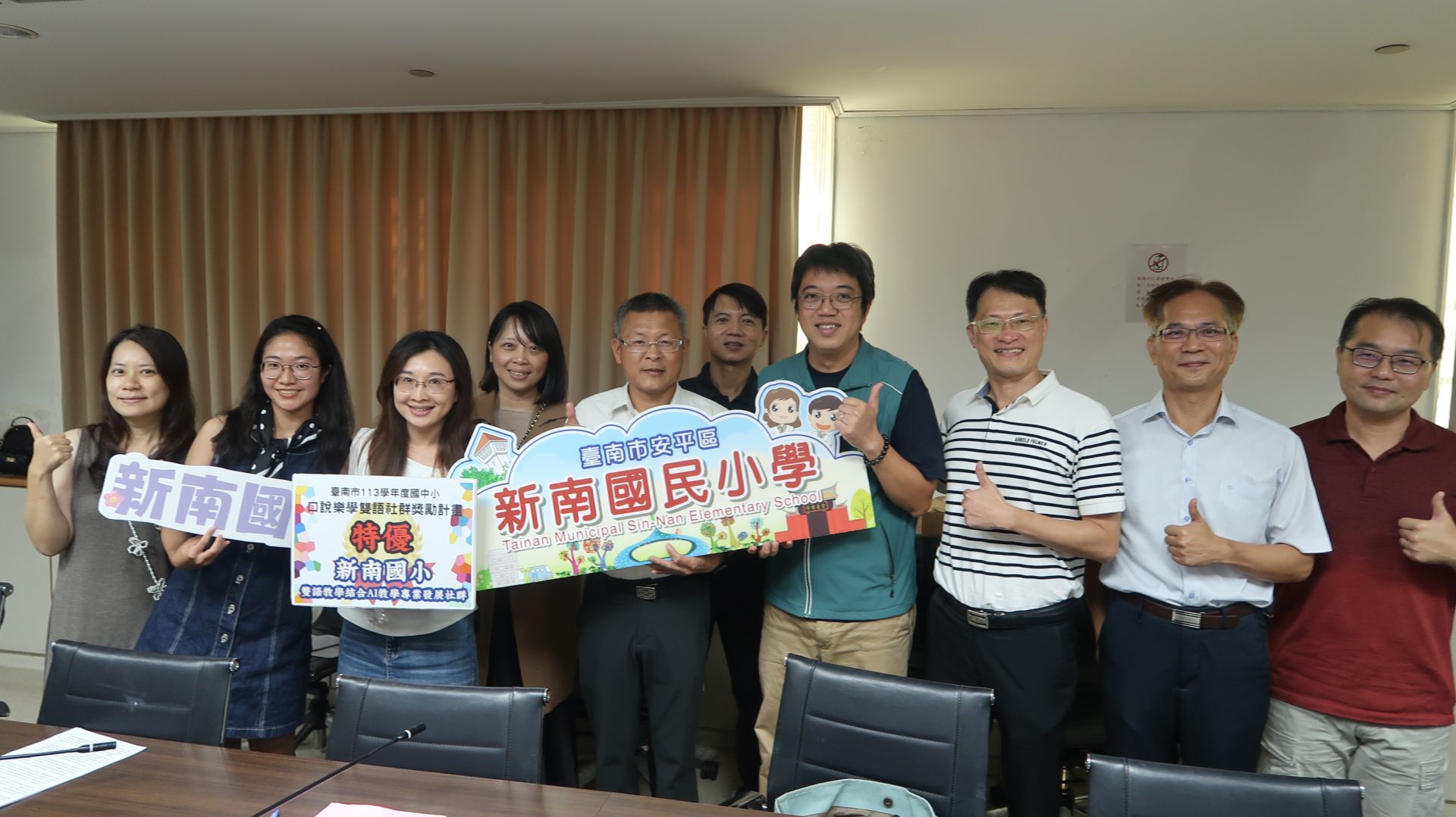 臺南市政府教育局推動「國中及國小雙語教學教師專業發展社群獎勵計畫」,鼓勵教師透過社群共學共備,強化專業交流、深化雙語教學實踐。113學年度成果評選日前出爐,共有16所學校脫穎而出,其中新南國小、坔頭港國小及學甲國中分別榮獲國小12班以上組特優、國小11班以下組優等及國中組優等獎,以創新課程與扎實實踐脫穎而出,成為全市雙語教師社群推動的典範團隊。
