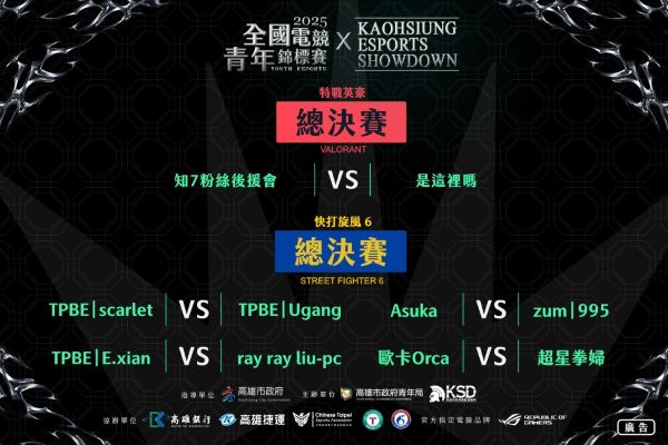 【視傳媒記者吉雄世高雄報導】眾所矚目的第五屆「全國電競青年錦標賽 × KAOHSIUNG ESPORTS SHOWDOWN」即將於本周末迎來最終戰!該賽事由高雄市政府指導、高雄市政府青年局與運動發展局共同主辦,高雄捷運、高雄銀行協辦,官方指定電競品牌「ROG玩家共和國」贊助,線下總決賽將在11月15日(六)、16日(日)兩天於高雄捷運美麗島站熱血登場。線上賽事脫穎而出的《快打旋風6》、《特戰英豪》決賽選手屆時將齊聚光之穹頂,爭奪60萬元總獎金與年度電競榮耀!