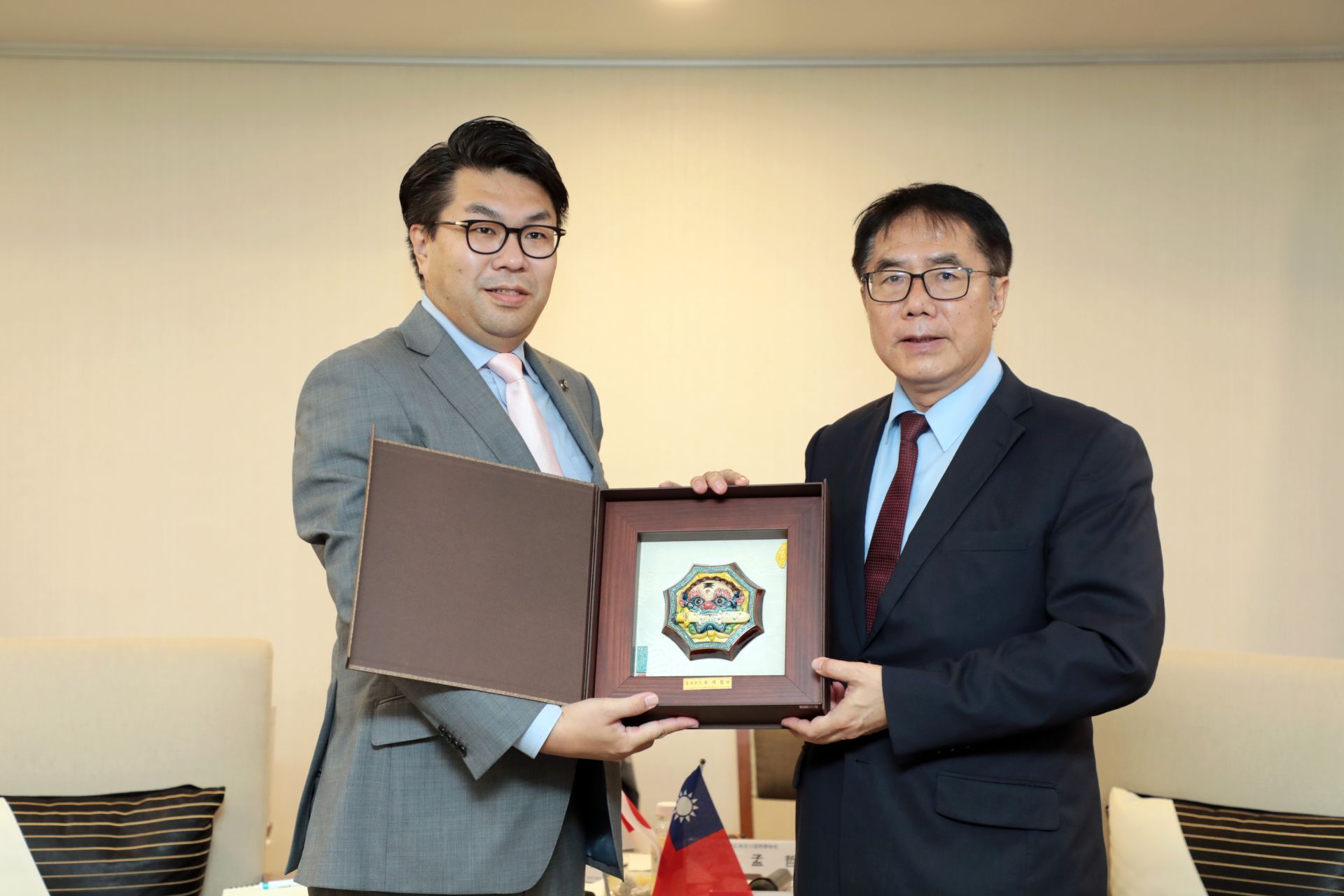 ▲日本美唄市櫻井恒市長蒞府拜會。(新聞處 提供)