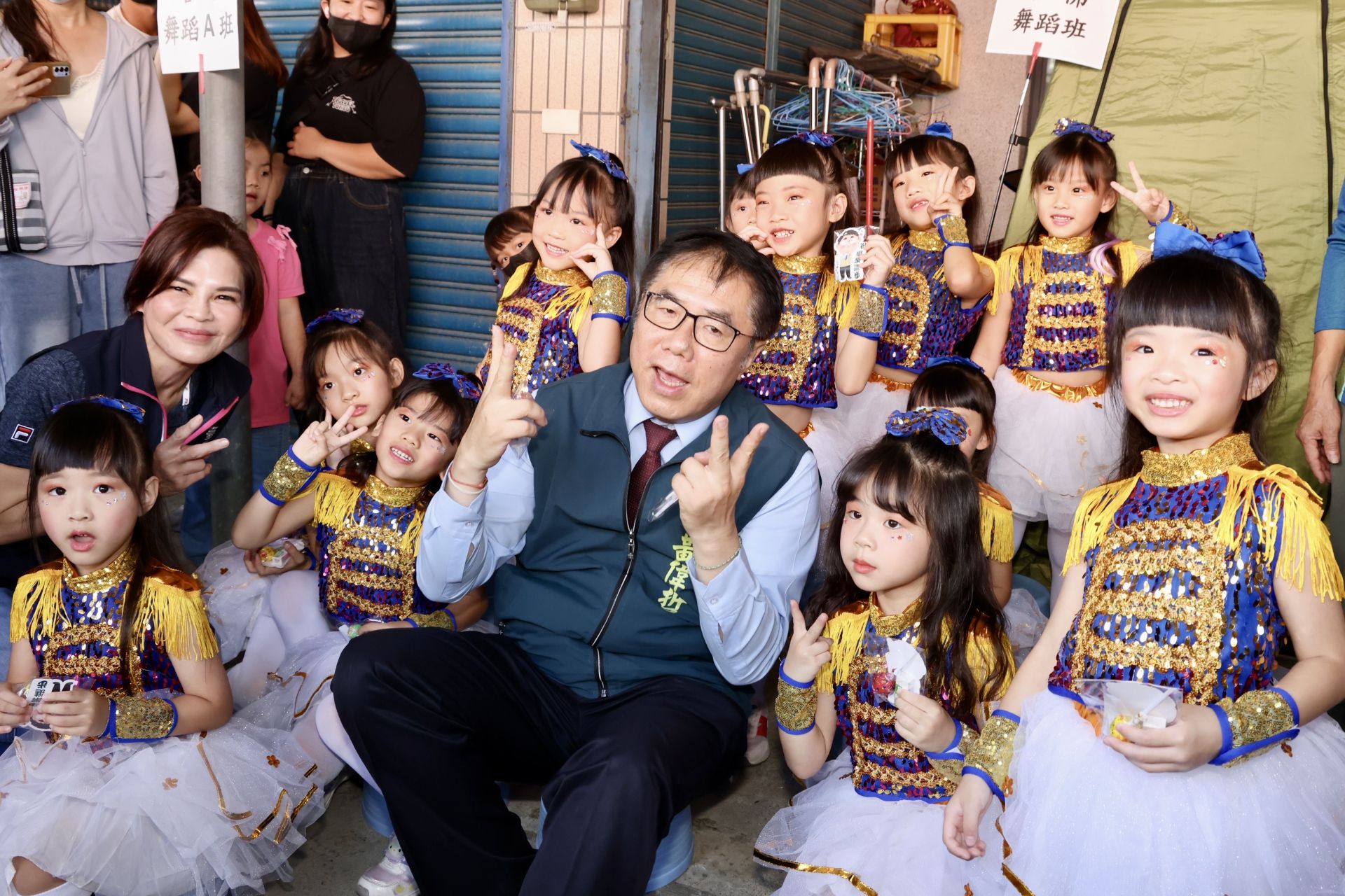 ▲市長黃偉哲與演出小朋友一起合照。(記者黃雋淮 翻攝)