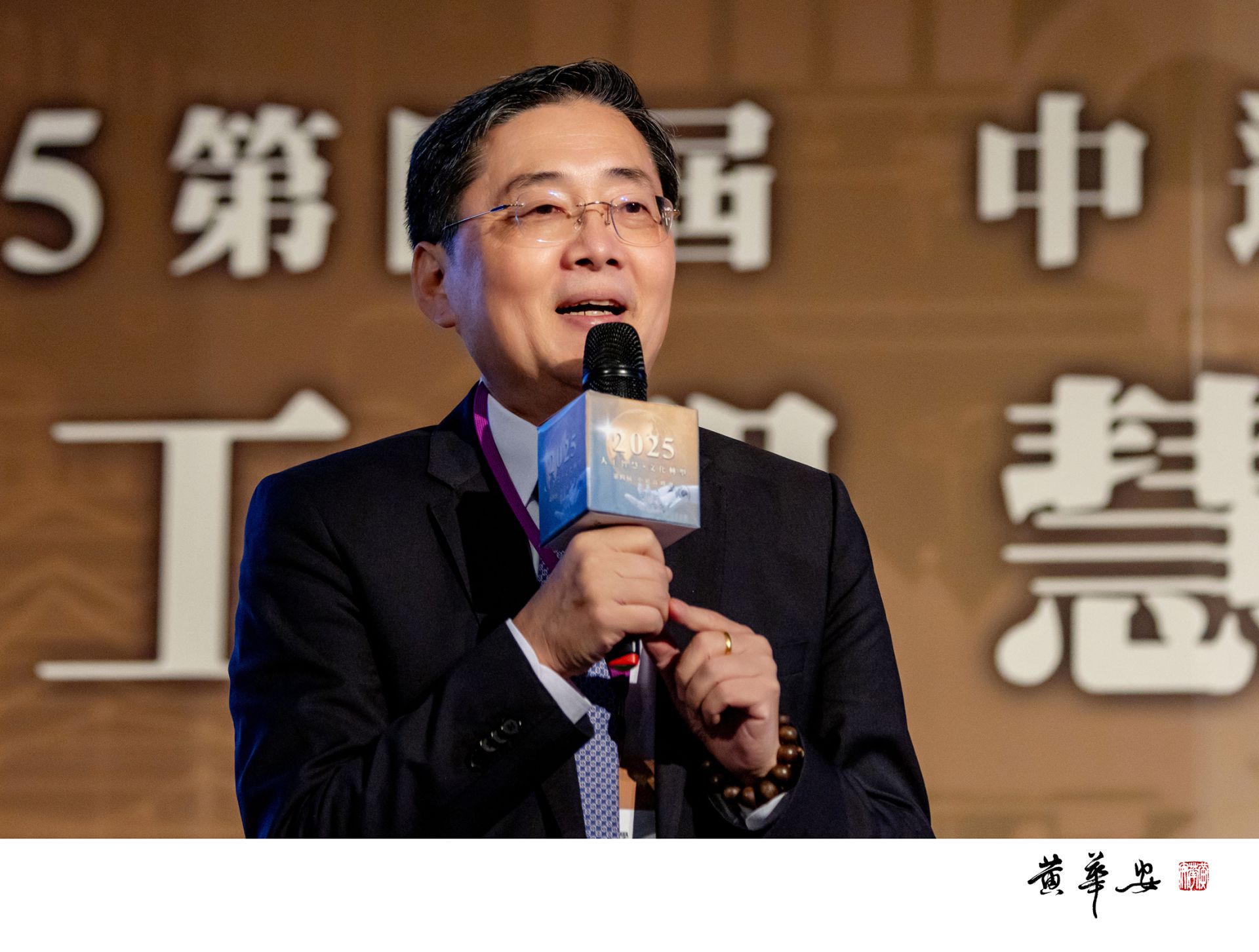 主辦方中華中道領導文化總會陳樹理事長致詞時提到,昨日為孫中山總理誕辰紀念日,他再次強調「天下為公」精神的重要。他指出,人工智慧雖能提升效率,但假訊息與詐騙已被世界經濟論壇列為未來兩年全球十大風險之一。在科技巨變下,人心安定與文化價值更顯重要。中華文化所強調的中道、和平與和合精神,正是面對國際挑戰與科技衝擊的重要指引。他呼籲宗教、科學與教育攜手,促進文明發展與社會穩定,共同為世界和平貢獻力量。