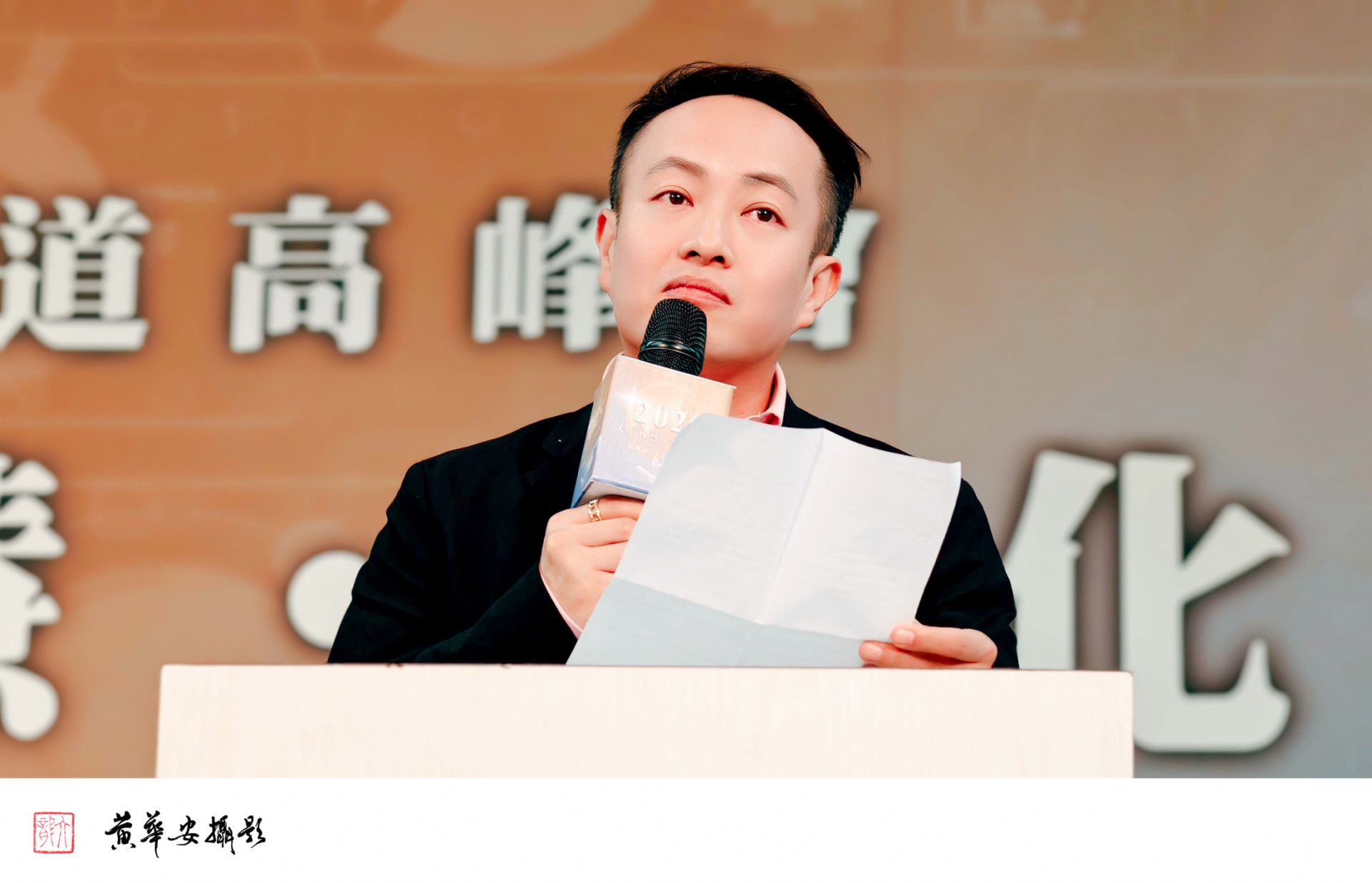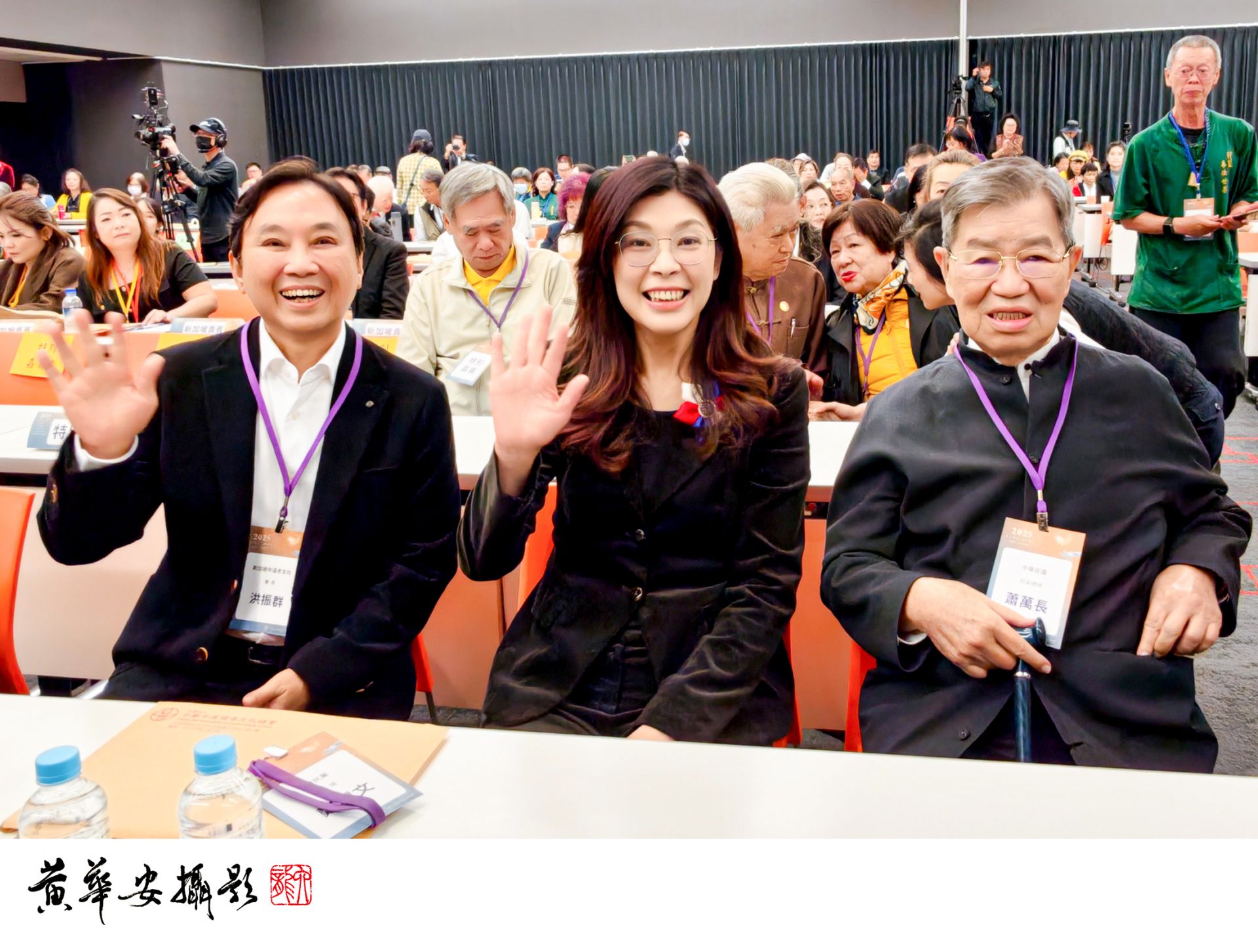 立法院長韓國瑜於午宴時特別撥冗出席,他表示中華文化千年精神可濃縮為「儒腦、道身、佛心」。儒家強調經世濟民,《禮運大同篇》展現的大同理想是社會穩定的重要思想養分;道家《常清靜經》倡導身心和諧,使個體與天地契合;佛家《心經》象徵慈悲與覺悟,提醒世人以慈悲待人、聞聲救苦。三者共同形塑中華文化完整面貌。他強調,AI時代更需維繫文化道統,使智慧在新時代持續發光。他肯定陳理事長與團隊推動「文化與科技融合」的努力,盼持續創新,為社會帶來更大貢獻。