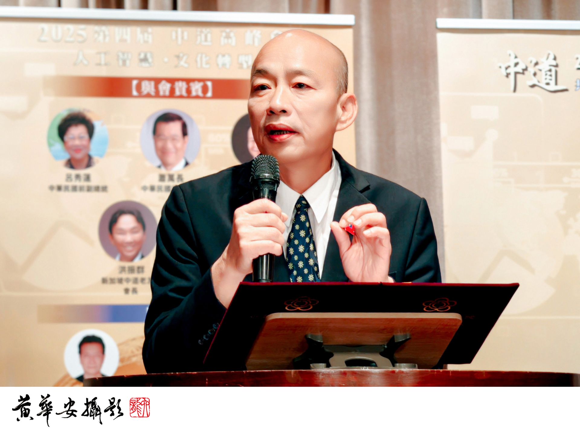立法院長韓國瑜於午宴時特別撥冗出席,他表示中華文化千年精神可濃縮為「儒腦、道身、佛心」。AI時代更需維繫文化道統,使智慧在新時代持續發光。(圖/記者黃華安攝)