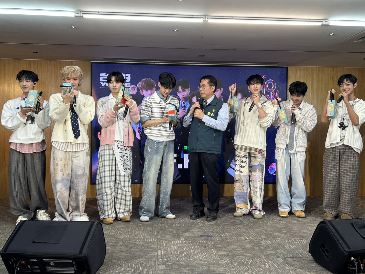 「台南市耶誕跨年系列活動」即將登場,市府今(18)日於永華市政中心召開記者會,市長黃偉哲攜手新世代冠軍男團F.F.O,宣布「2026台南市耶誕跨年系列活動」從11月29日起,連續6周,共有3場親子活動以及3場大型演唱會,精彩可期。記者會中特別安排F.F.O透過魅力四射的舞蹈演唱,提前為台南耶誕跨年活動炒熱氣氛,黃偉哲也和近期剛為刑事警察局拍反詐騙宣導廣告的F.F.O,共同呼籲民眾留意網際網路的詐騙訊息,此外也請他們擔任「台南美食大使」,邀請全國民眾一起來台南參加耶誕跨年、吃美食!