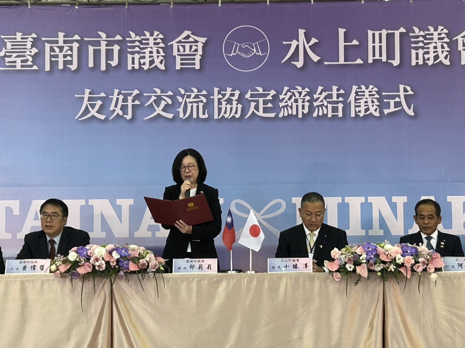 ▲台南市議會與日本水上町議會締結友好交流協定 議長邱莉莉:期盼開創友好關係。(記者黃雋淮 攝)