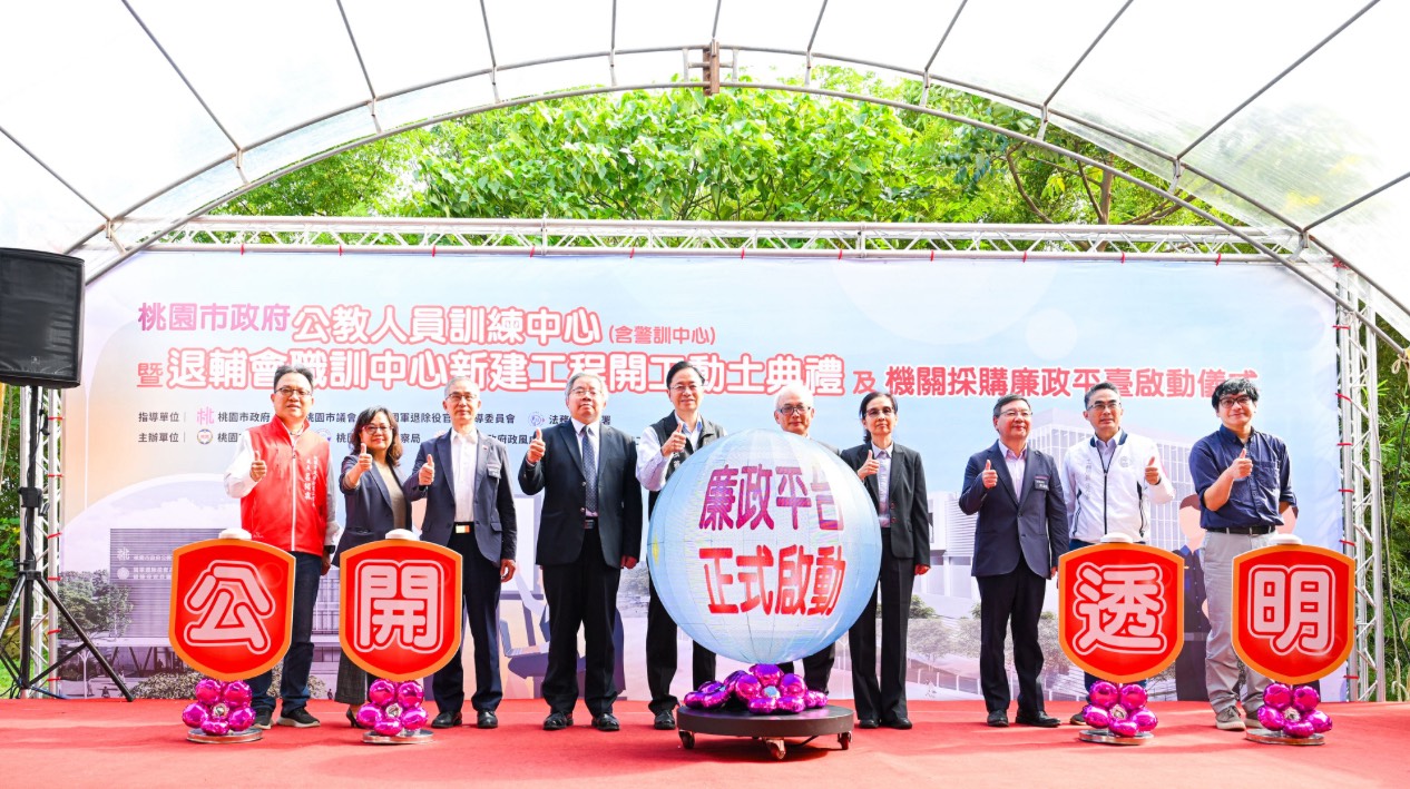 【視傳媒記者袁慧心/桃園報導】桃園市長張善政於(21)日下午前往八德區,出席「桃園市政府公教人員訓練中心(含警訓中心)暨退輔會職訓中心新建工程開工動土典禮」及「機關採購廉政平臺啟動儀式」。張市長表示,本案工程總經費約16.56億元,預計於117年完工,完工後將由退輔會職訓中心、警察局訓練中心及公教人員訓練中心共同使用,成為本市強化公務與警察專業訓練的重要基地。