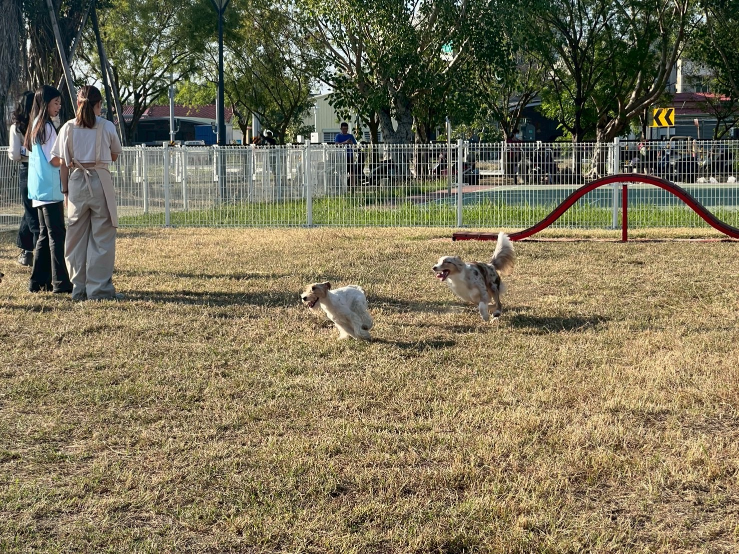 ▲毛孩於寵物公園內奔跑玩耍。(動保處 提供)