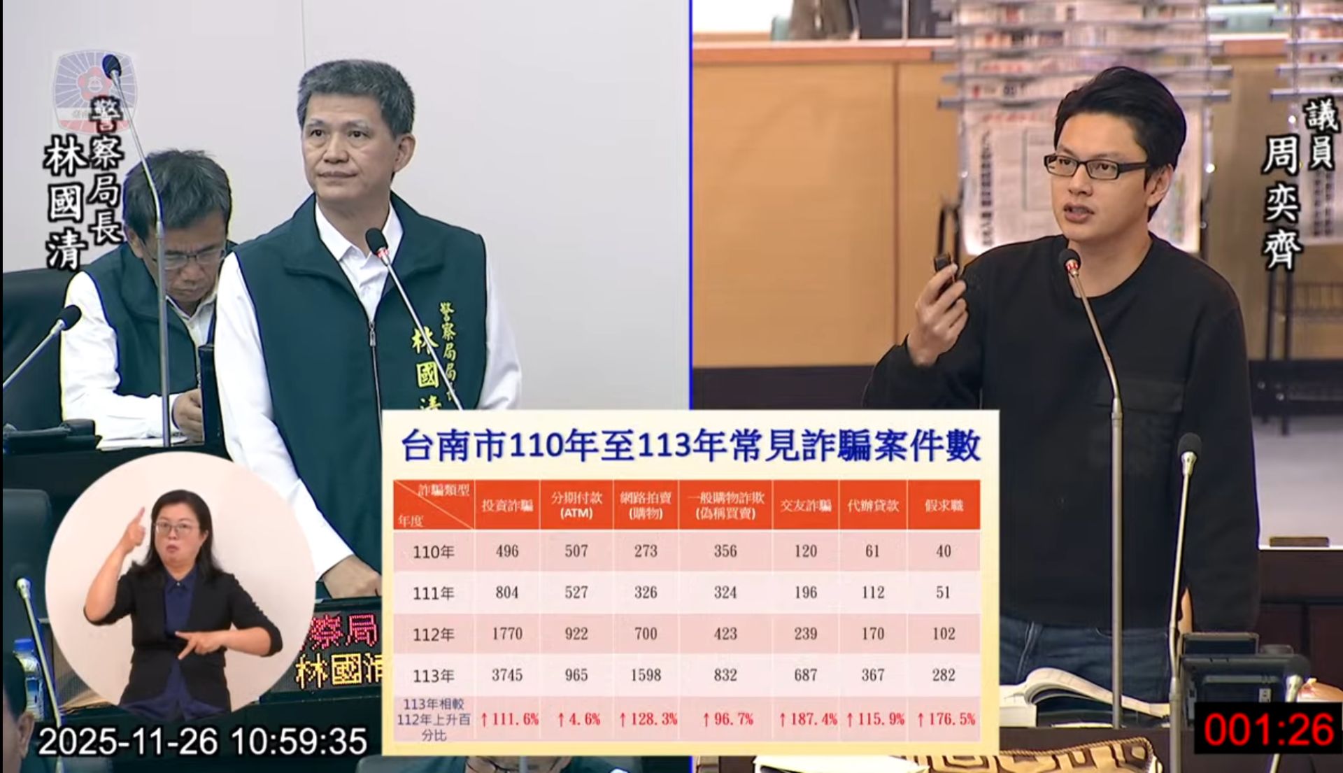 周奕齊說,這些虛擬貨幣的帳戶多設於國外,並利用VPN跳板,導致台灣警方難以追查金流。雖然中央設有檢舉網址可移除惡意網頁,但針對涉及國外虛擬貨幣的詐騙,目前缺乏有效追緝措施。他呼籲警察局能加強詐騙犯罪偵防。