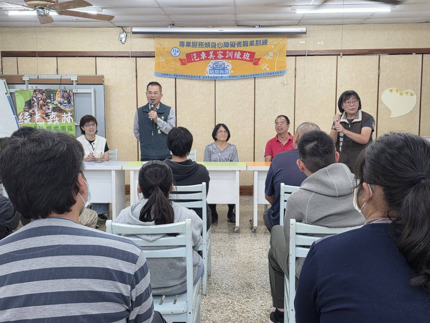 臺南市政府勞工局為實現市長黃偉哲「希望家園」的施政理念,於114年8月4日委託財團法人台南市私立天主教瑞復益智中心承辦身心障礙者職業訓練-汽車美容訓練班,歷時四個月的專業訓練,於今(26)日舉行結訓典禮及職訓成果驗收,共有15位學員順利完成課程,準備迎向職場新階段。