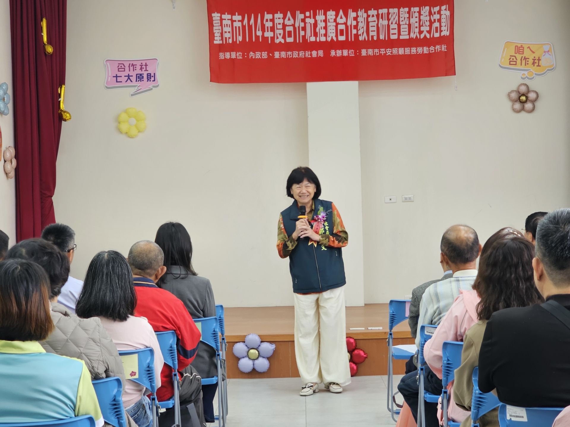 社會局長郭乃文指出,合作社是以平等與互助為基礎、由人民自願組成的自治團體,合作社存在的價值,來自成員共同面對生活需求,彼此協力支持,一起讓社會變得更加美好。郭局長強調,合作社不只是經濟型態的組織,更是具備濃厚人文精神的集體力量,在追求自助、自我負責、平等與團結的核心價值之外,更應積極實踐誠實、開放與社會責任,並以關懷他人的行動,讓這份力量延伸至社區、擴及整個社會,為永續公益做出付出。郭局長特別恭喜此次榮獲內政部評定為優等合作社的「有限責任衛生福利部嘉南療養院員工消費合作社」、「有限責任臺南市平安照顧服務勞動合作社」、「保證責任臺南市山上果菜生合作社」、「有限責任臺南市第一漁權會漁業生產合作社」及「保證責任臺南市學校員生消費合作社聯合社」,期許未來各合作社能持續擴展於弱勢照顧、社會關懷與社區支持等面向,共同成為促進社會共好、共融與進步的溫暖夥伴。