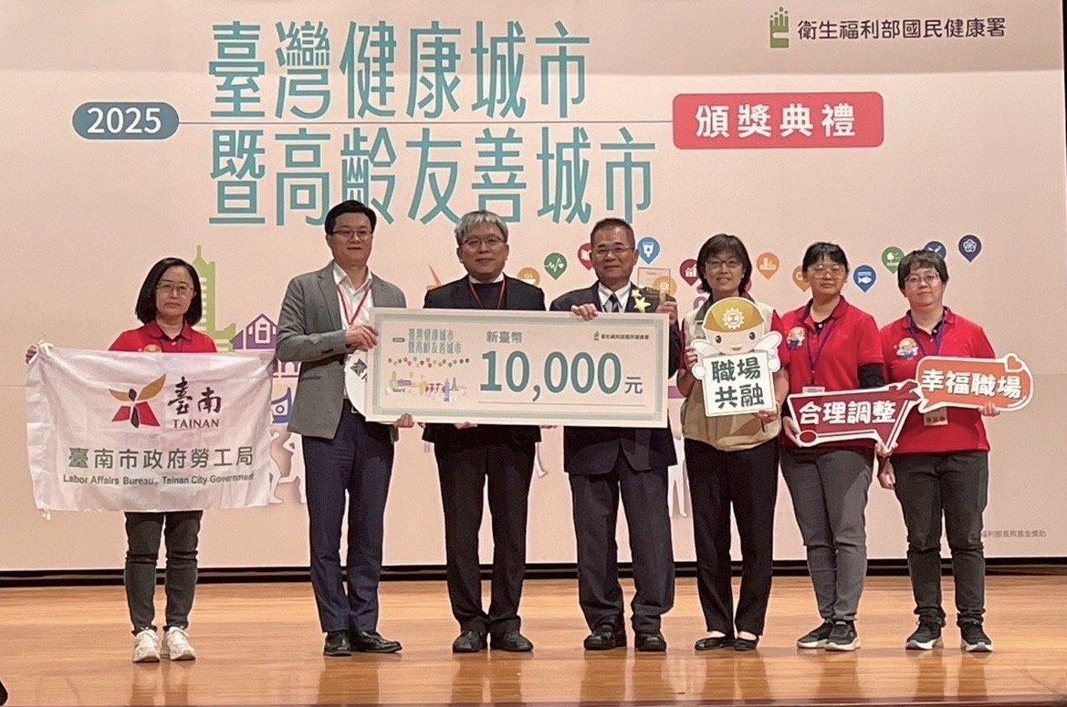 臺南市政府勞工局榮獲「114年臺灣健康城市暨高齡友善城市─健康平等獎」,並同步獲得「健康城市海報獎─銅獎」,雙獎殊榮肯定臺南在促進身障就業與推動職場平權上的努力。此次獲獎不僅彰顯勞工局在協助身障朋友就業及打造職場共融環境上的傑出表現,亦呈現市府長期推動勞工職場健康友善措施的成果,並落實市長黃偉哲「希望家園」的施政願景。