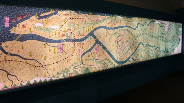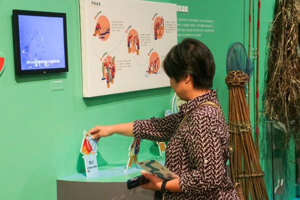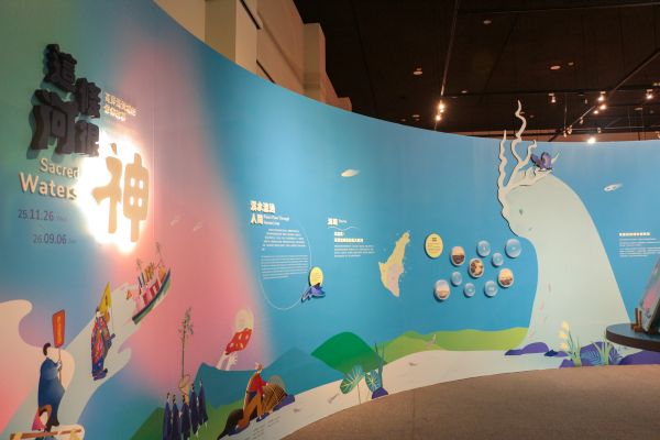 高屏溪特展以蜿蜒的流向曲面規劃「溪水流過人間」、「神靈與子民共棲之地」、「敬天祭河送字灰」、「勇魂與守護神」四大展區,帶領觀眾從上游到出海口,透過故事、文物、影像、模型等,探索人與水、土地與信仰之間川流不息的連結。