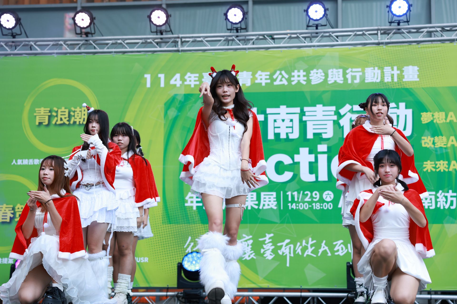 「臺南醬 はーい!」行動團隊特別號召12組學生社團更以青春氣息燃爆舞台,舞群的律動讓廣場歡呼聲四起,展現新世代的藝術能量與魅力,團隊表示,期望透過培力青年透過舞蹈文化展現青世代能量,實際提出政策建言促進舞蹈人才環境,也期望有機會讓下個周子瑜閃耀國際;由國立成功大學跨科系組成的「孔乙己哇與沒有麗莎」團隊,也特別上台分享透過審議計畫組織青年關心臺南鐵路地下化後綠色運具的未來想像的成果,邀請參與民眾至攤位互動品咖啡,一起分享彼此的想法。