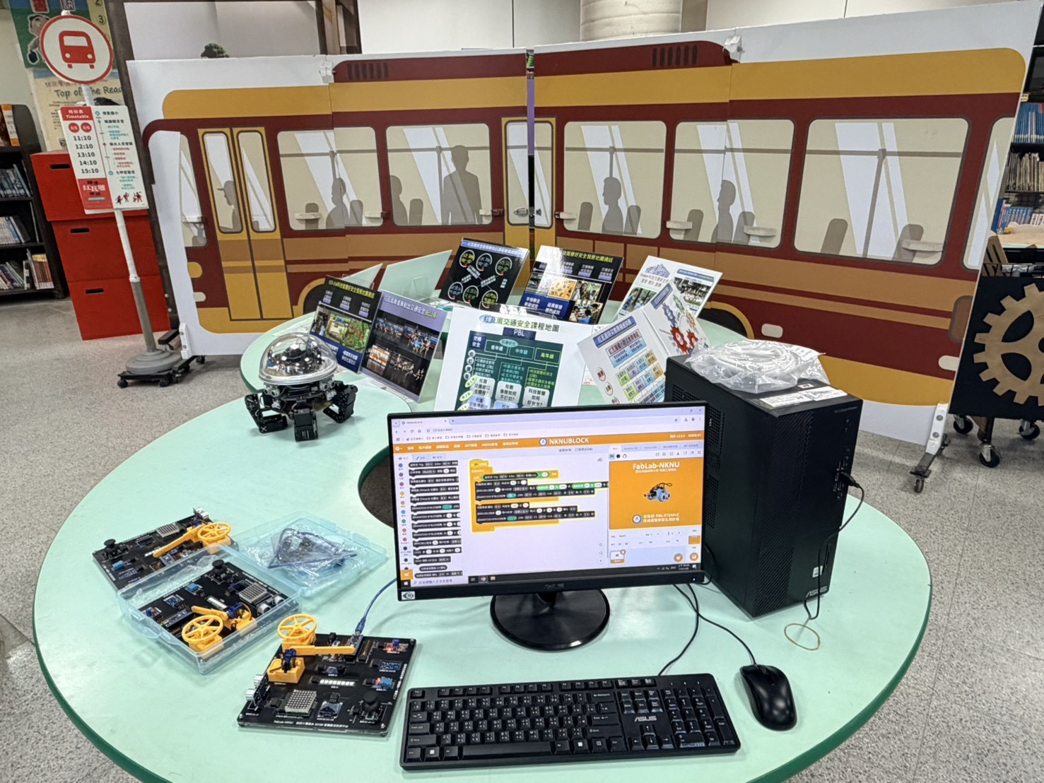 高年級學生透過PBL 探究課程,運用Nknublock等電子控制板,研發科技化動態防災地圖,規劃師生和社區動態科技避難路線,設置在校園通學步道上,讓在通學步道運動的民眾清楚知道避難是生活重要素養。學校重視學生所研發的交通柵欄自動感應智慧財產,將之轉化建置成大型教學情境,成為學校安全教育的場域。這條科技化的安全教育環境步道是許多社區居民日常運動休閒的地方,校方希望透過這些設施,讓師生、家長與社區居民都能達到「沉浸式體驗」,共同重視安全教育。