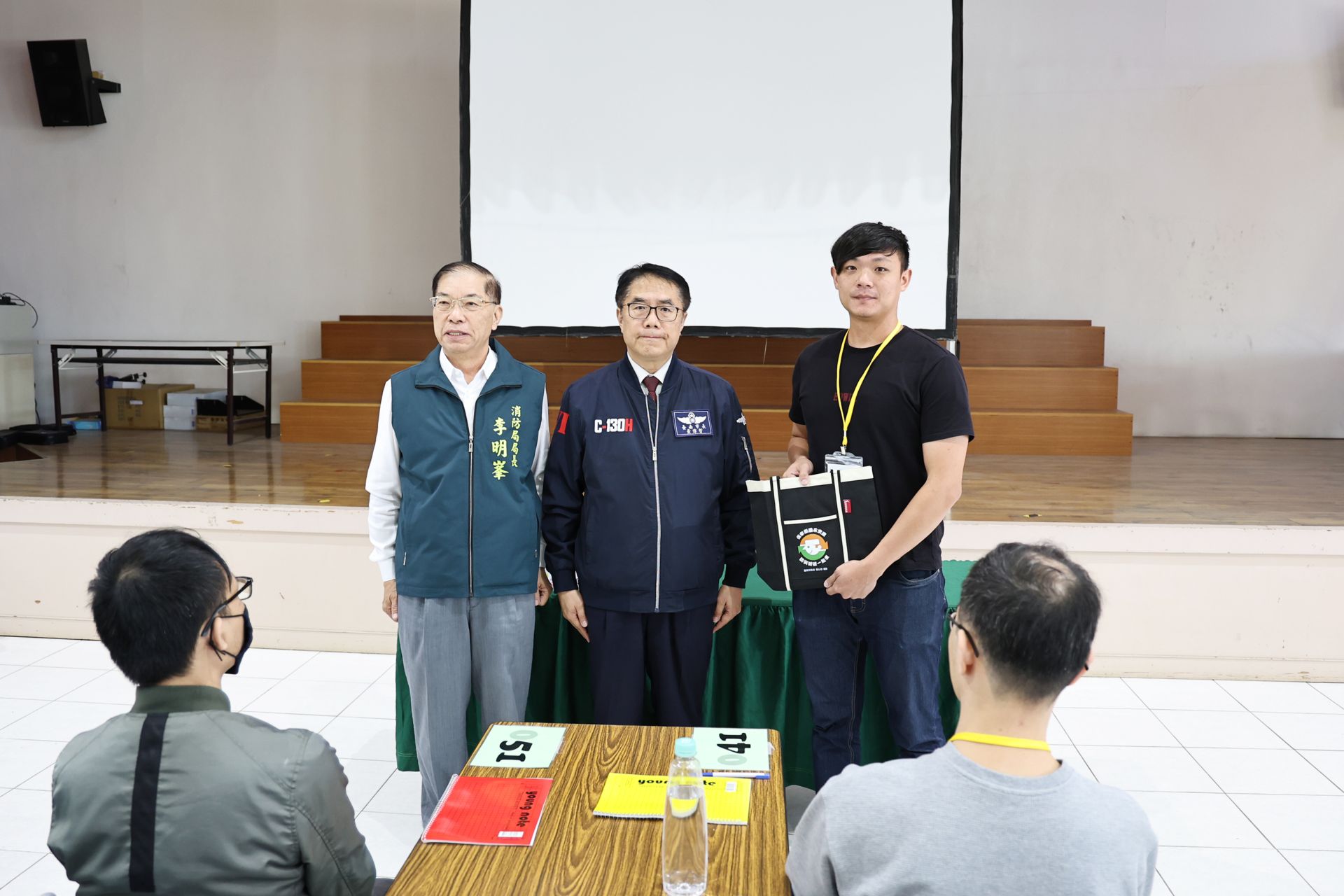 ▲市長黃偉哲致贈紀念品,感謝備役役男參加受訓。(記者黃雋淮 翻攝)