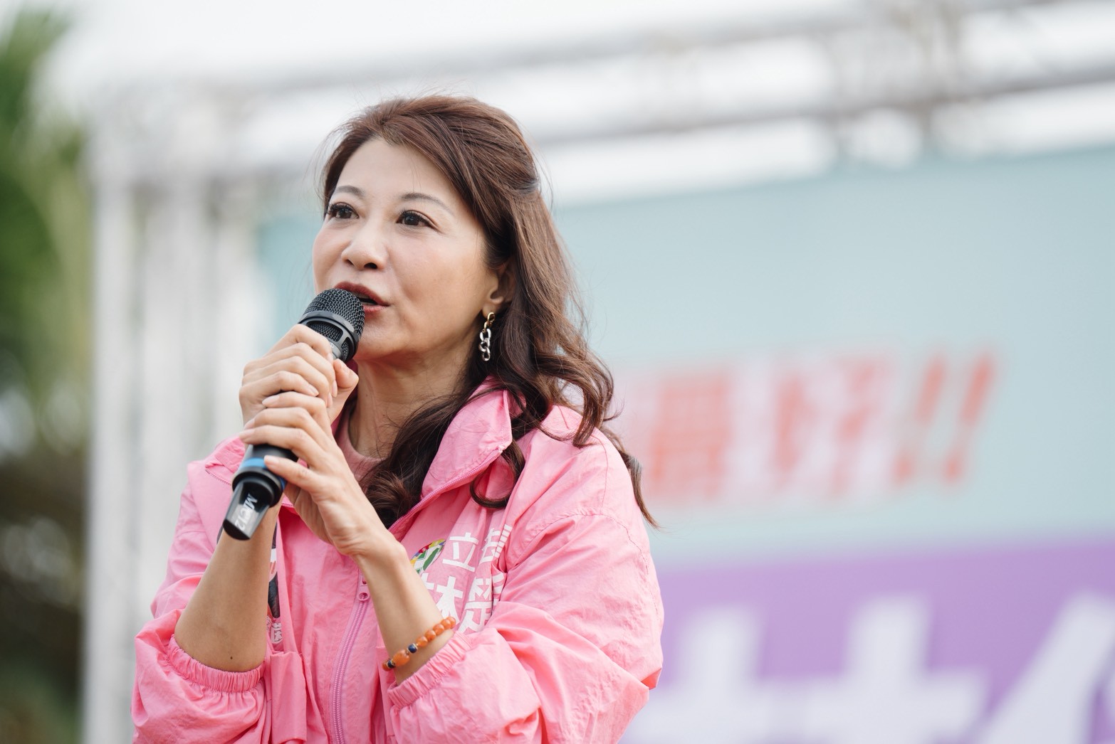 ▲前三立資深主播現任民進黨不分區立委林楚茵也專程南下為林俊憲站台。(立委林俊憲團隊 提供)