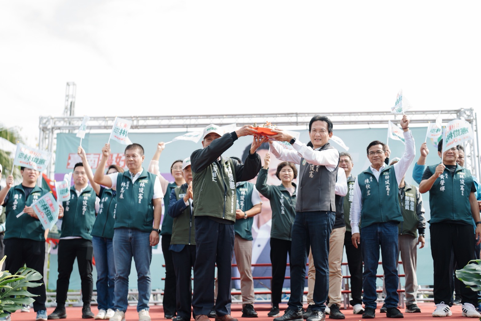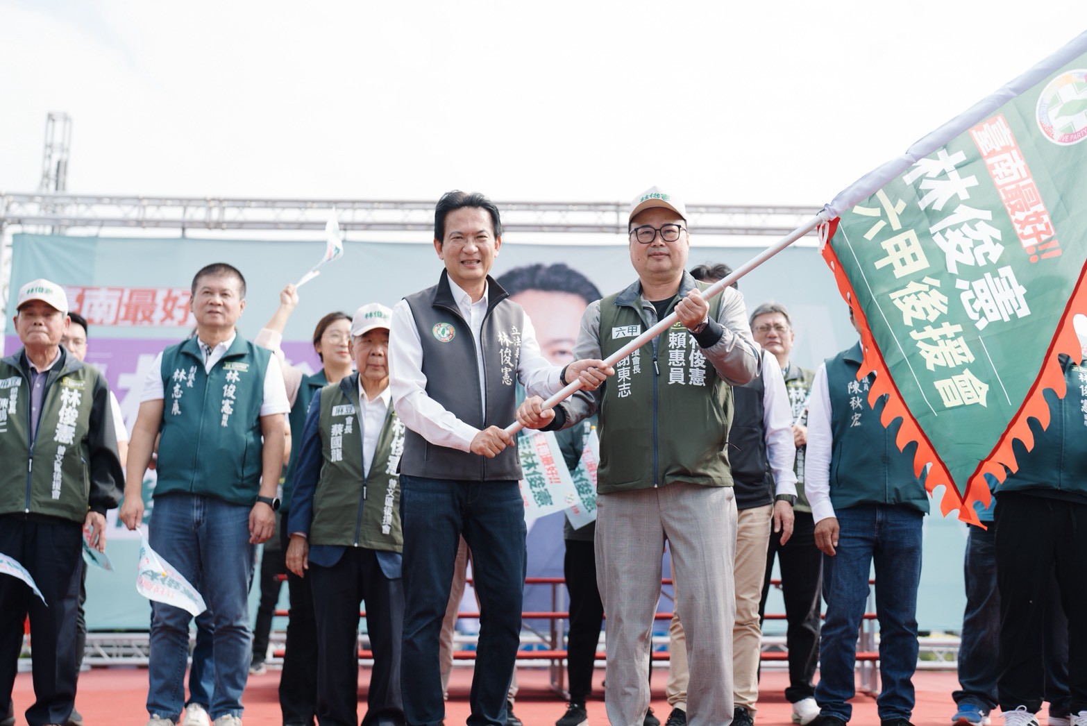 ▲民進黨參選人林俊憲授旗給麻豆後援會會長。(立委林俊憲團隊 提供)
