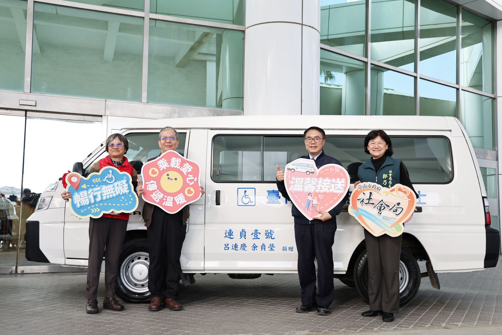 社會局長郭乃文說明,呂連慶先生為嘉義子弟,曾於台南求學,繼今年於嘉義捐贈復康巴士後,特別與妻子共同回饋台南;林蔡美麗女士則以實際行動紀念已故丈夫林碧山先生,聯名捐贈車輛,將思念化為長久陪伴與支持,展現深厚的人情關懷。