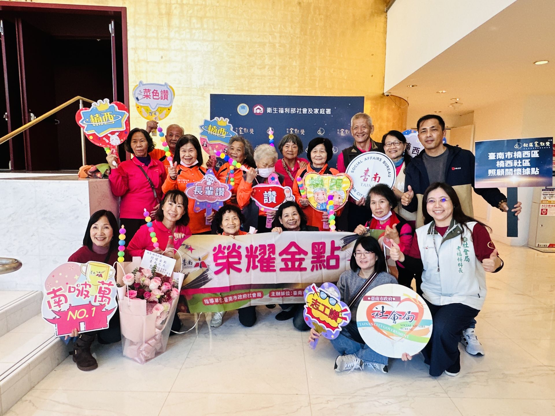 為表揚績優社區照顧關懷據點的深耕成果及典範貢獻,衛生福利部於昨(23)日假臺灣戲曲中心大表演廳盛大舉行第十一屆「114年社區金點獎」頒獎典禮。臺南市今年共有2個團體單位入圍並勇奪2座獎項,分別為楠西區楠西社區照顧關懷據點與安定區中沙社區照顧關懷據點獲得「金點之星獎」,展現臺南市推動老人福利的亮眼成果。市長黃偉哲特別向獲獎團隊致賀,肯定其為臺南社區照顧服務增添光彩。