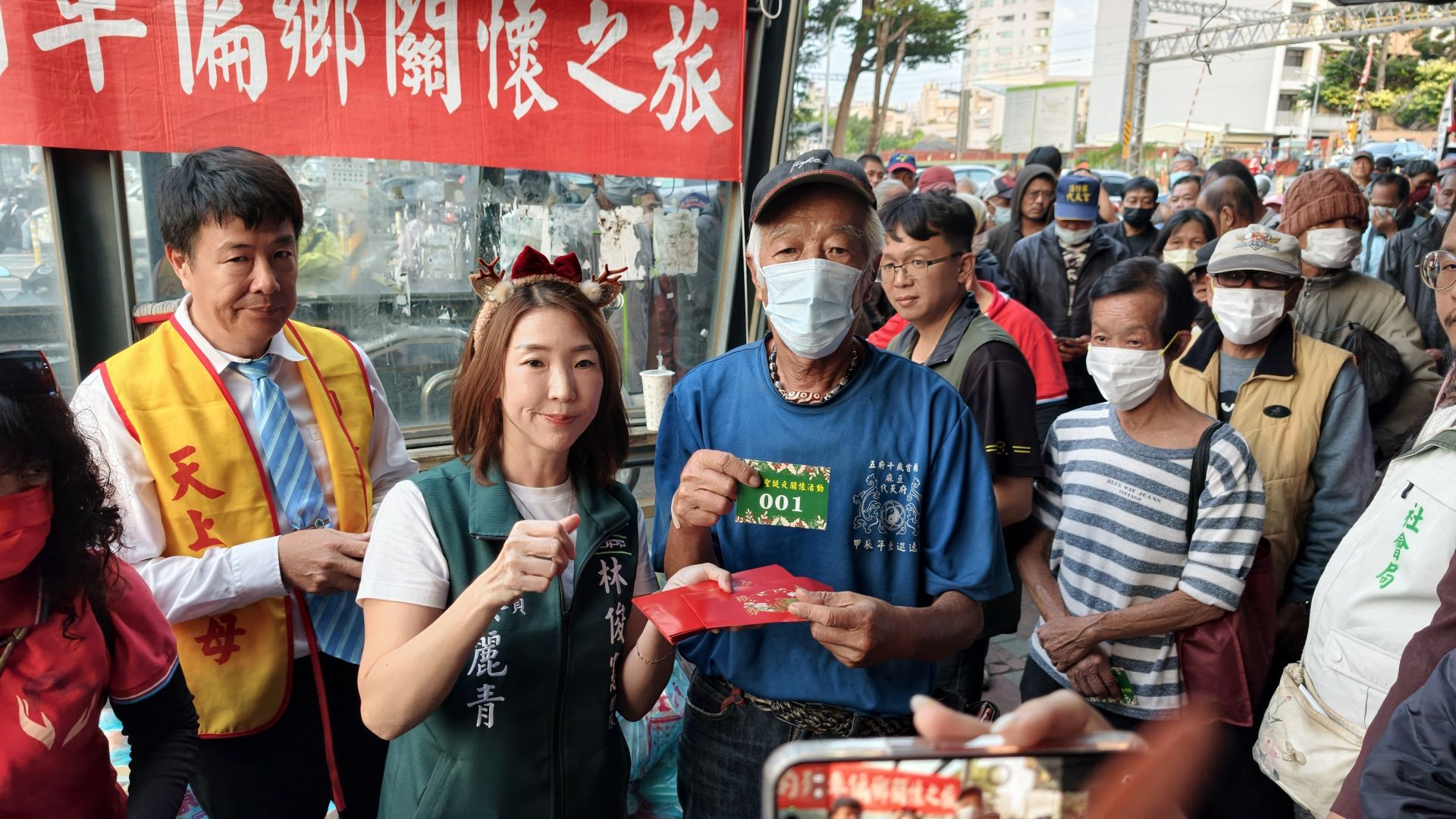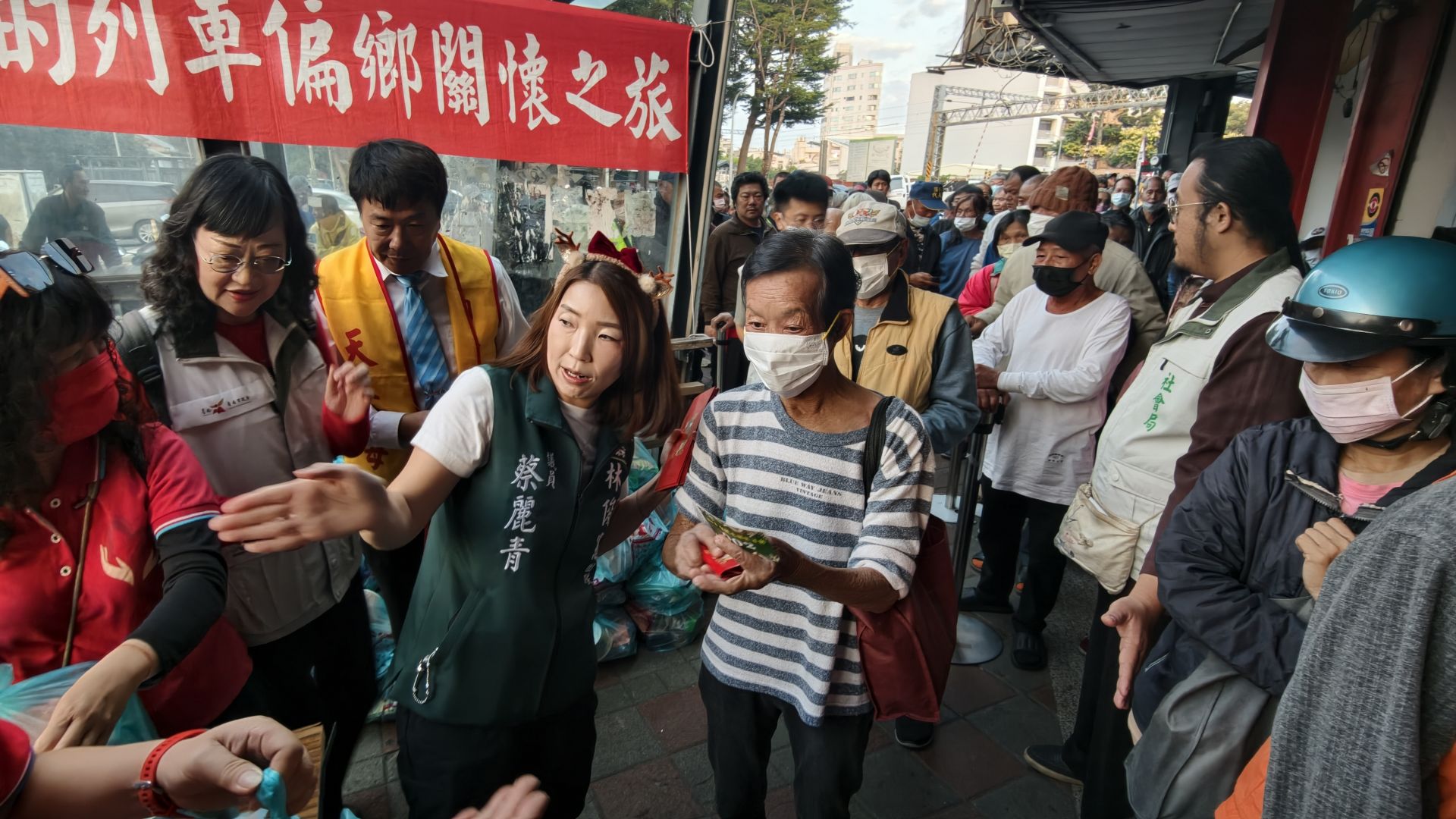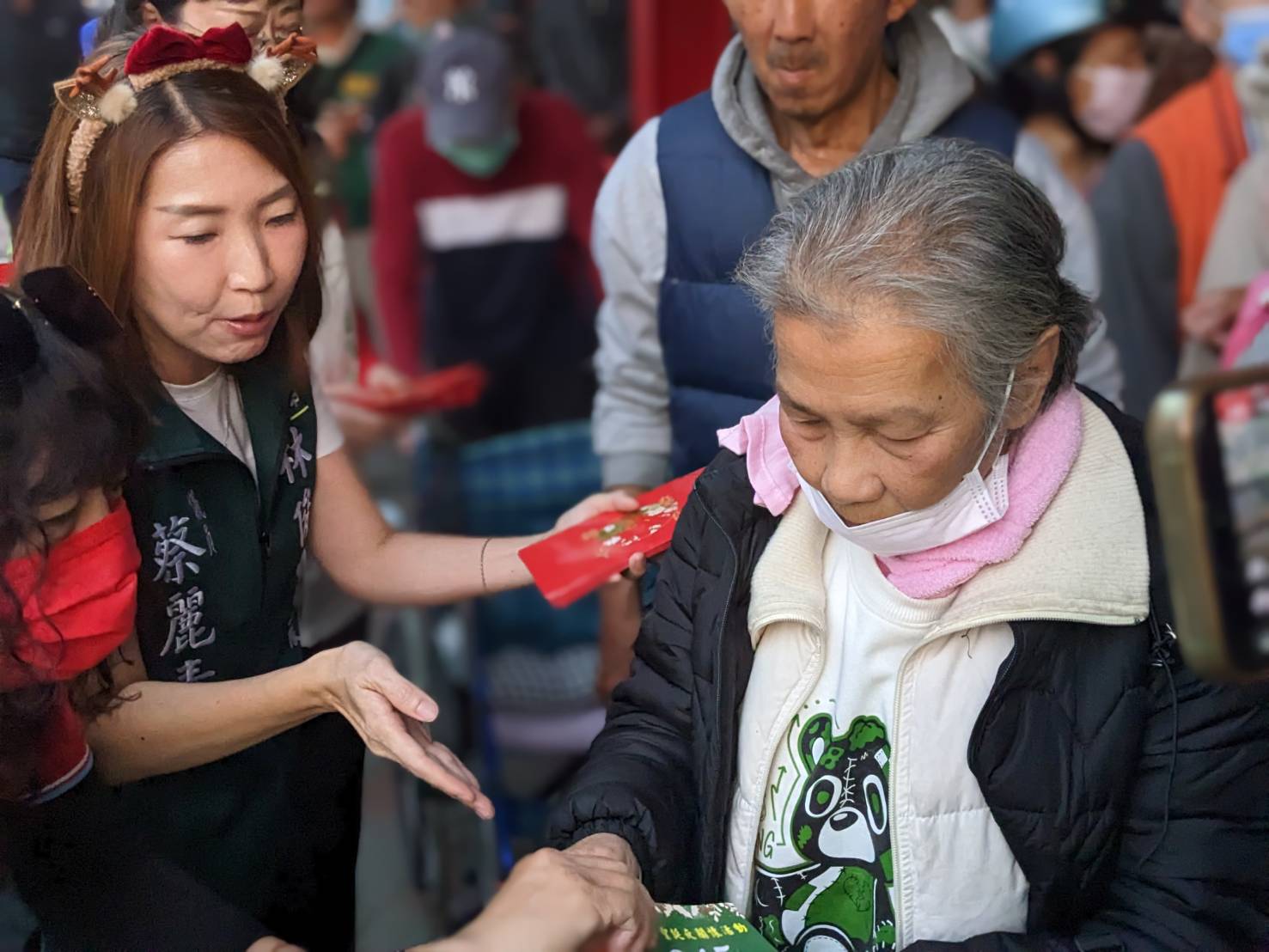 ▲市議員蔡麗青送給街友或有困難的人紅包,希望他們能好好過個平安夜。(記者黃雋淮 翻攝)