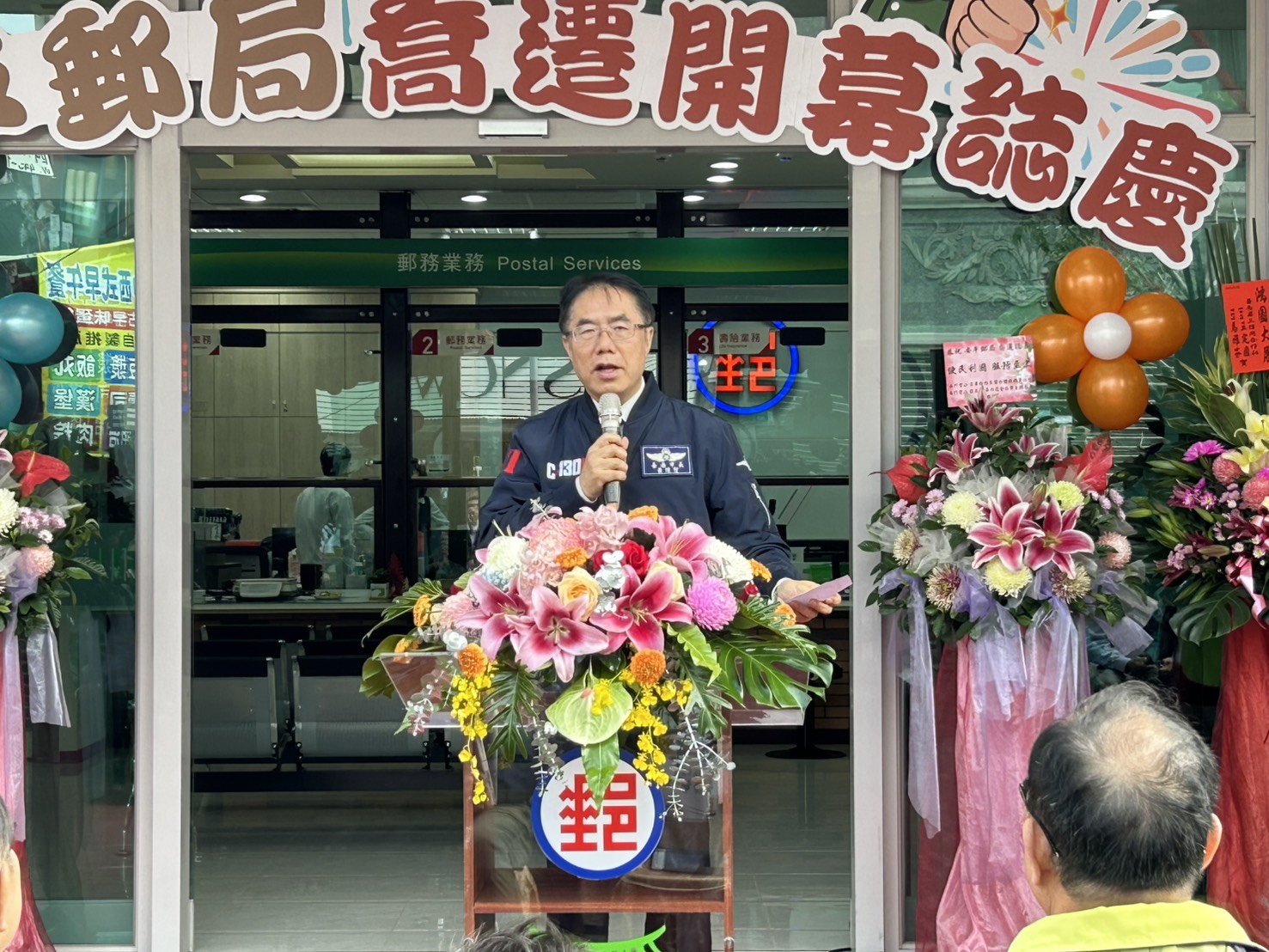 ▲市長黃偉哲於台南安平郵局喬遷開幕典禮致詞。(記者黃雋淮 攝)
