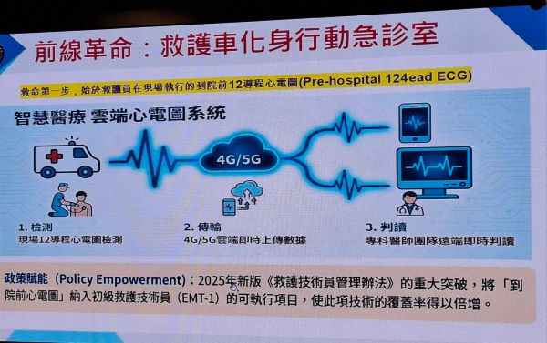 【視傳媒記者吉雄世高雄報導】心臟疾病長年高居國人十大死因前列,其中急性心肌梗塞(AMI)發作迅速、死亡率高,唯有與時間賽跑,掌握黃金搶救時間,才能大幅提升存活率。中央健康保險署與高雄市積極推動「高雄智慧救心網」,落實「到院前救護車心電圖即時行動傳輸與線上判讀系統跨院合作計畫」,整合消防救護、醫療院所與醫師即時判讀機制,讓救護車化身為「行動急診室」。救護人員在運送患者途中,即能執行12導程心電圖檢測,透過4G/5G即時傳輸至雲端,由專科醫師團隊線上判讀並指導用藥,提前啟動心導管團隊,成功建立院前與院中無縫接軌之急性心肌梗塞救治流程,爭取每一分每一秒的救命時間。