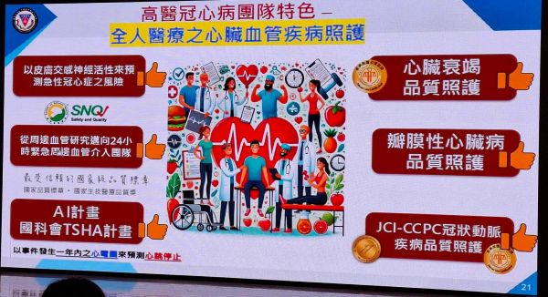 高雄醫學大學附設中和紀念醫院(以下簡稱高醫)林宗憲副院長表示,高醫身為大學附設醫院,對於急、重、難、罕疾病的照護責無旁貸,更在2025年由康健雜誌評選為南部唯一的醫學中心級「急性心肌梗塞特色醫院」。高醫積極建立整合式照護模式,並研發AI驅動的心跳停止風險預測模型。透過「高雄模式」的區域聯防,不僅有效掌握搶救時間,更讓急救責任醫院的處置流程無縫接軌,目標是讓心肌梗塞患者的救治成功率能夠提升,死亡風險進一步降低。