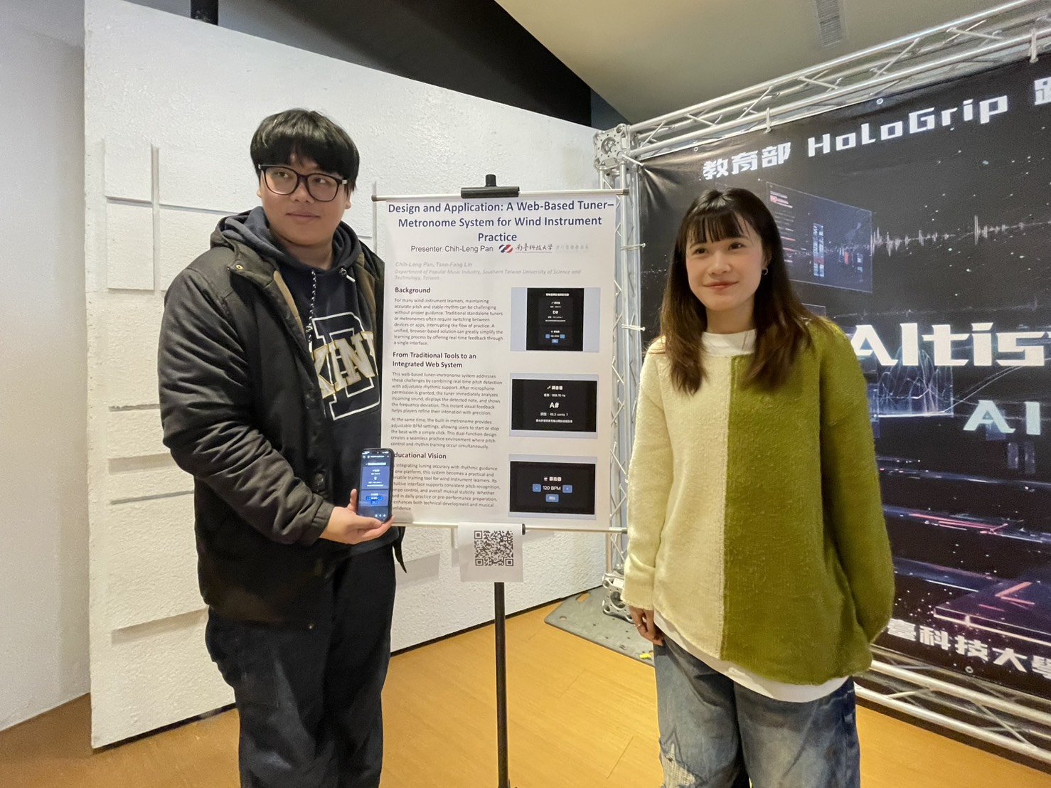 林岑芳說明,科技研發過去的刻板印象多由男性所主導,而本計畫特別強調在以「女性研發人才培育」為主軸。團隊中多位女學生發揮了獨特的創意,成功開發了具備細膩人文視角的網頁聲音多媒體軟體。更特別的是,流音系學生雖然非STEM(理工)背景,但在跨域課程引導下,所有修課同學都成功創作了自己創作的聲音多媒體軟體,並將在1 月 7 日活動現場,展出別出心裁的音樂互動 APP 供觀眾掃碼體驗。舞台上亦將呈現十首運用 AI 與跨域科技的原創歌曲。學生創作題材多元,從「用 AI diss AI」的趣味反思,到關注性別平權與女性科技職涯的深度議題,展現新世代對科技與人文的雙重關懷。