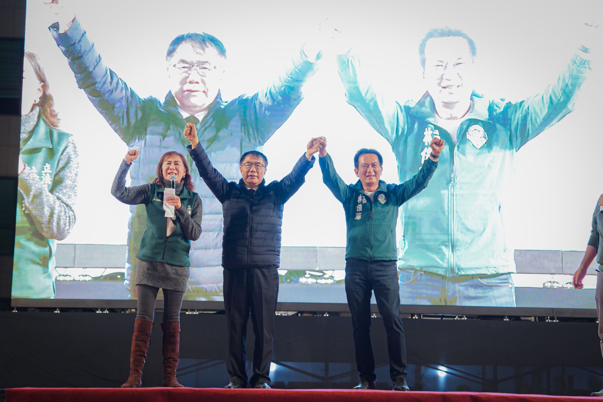 ▲現任台南市長黃偉哲及立委林宜瑾用盡心力全力相挺台南市長參選人林俊憲。(立委林俊憲團隊 提供)