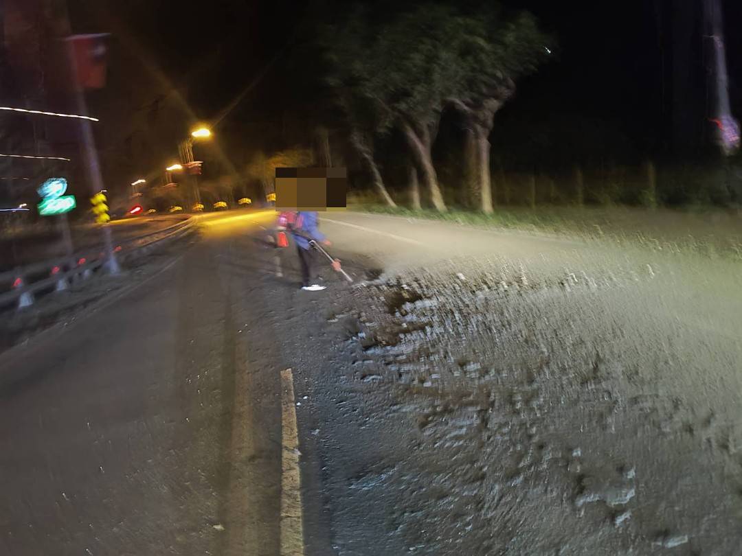 圖說 : 鳳林警分局長橋派出所警員謝宗祐日前於晚間19至23時,獲報鳳林鎮臺9線230公里南下車道有大量砂石散落,影響行車安全。( 攝影記者╱林秀貞 翻攝 )