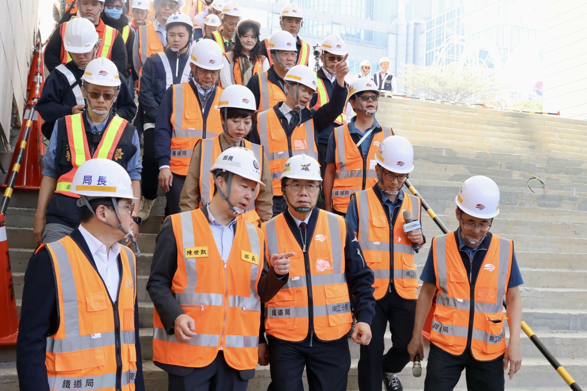 ▲市長黃偉哲、交通部長陳世凱率相關單位人員現勘台南鐵路地下化工程,聽取工程進度說明。(南市府 提供)