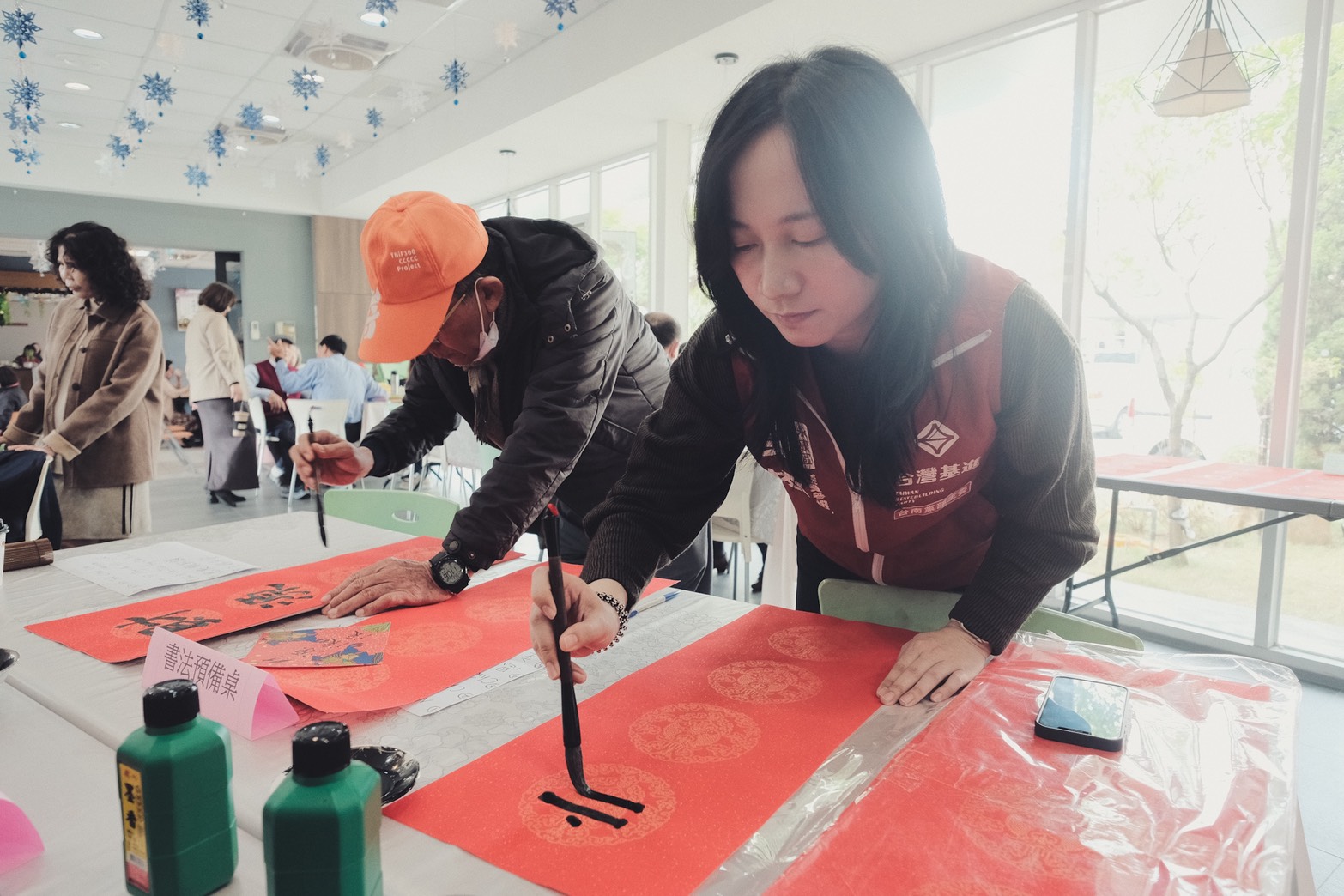 為迎接新年到來,台灣基進永康區市議員參選人吳依潔昨(1)日,與高師大國文系書法研究所碩士班的父親及兩位書法老師,和平時參與聚會的永康大灣基督長老教會一同合作,於該教會台語主日禮拜後,進行現場揮毫寫春聯送給會友的活動,吸引會友們熱烈參與。活動現場還特別書寫台文春聯,傳遞滿滿的新春祝福與希望。