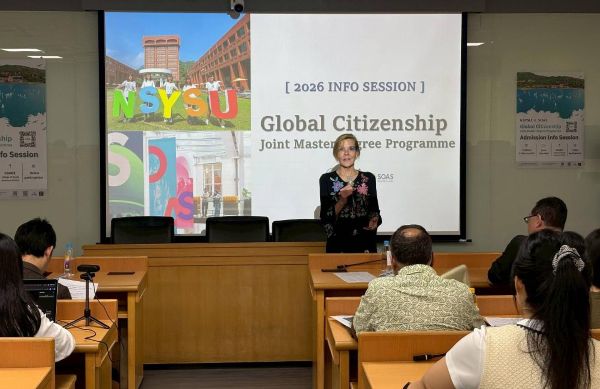 國立中山大學與倫敦大學亞非學院(SOAS University of London)114年4月簽署校級合作備忘錄、12月正式簽署「全球公民權碩士學位學程—學位授予協議書」,期間雙方多次密集討論協作,日前舉辦「NSYSU-SOAS全球公民權碩士學位學程」招生說明會,正式啟動深度學術合作。
