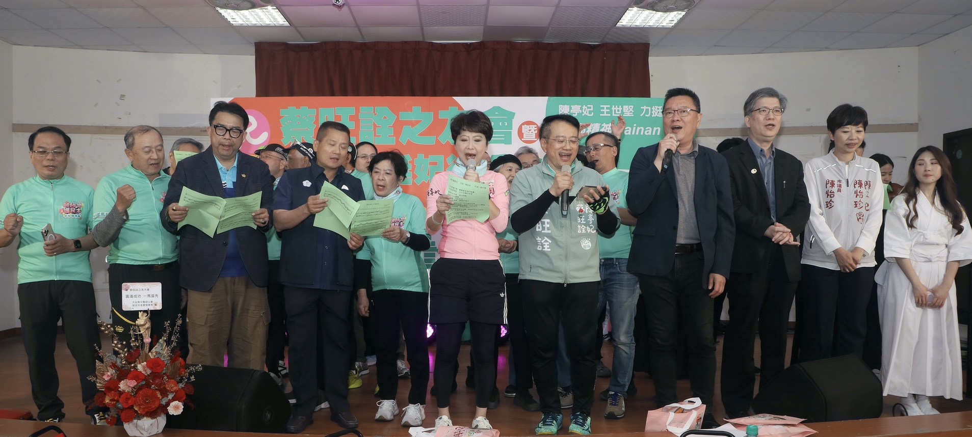 大會最後,陳亭妃和蔡旺詮與妃妃鐵馬隊20多位成員以及後援會幹部團長歐政輝、胡富文、郭世芳醫生等共同發出動員令,呼籲鄉親在民調期間務必「在家守護電話」。若接到訪員詢問,請堅定回答:「唯一支持蔡旺詮」,讓專業、資深的力量能繼續在議會為台南東區發聲。