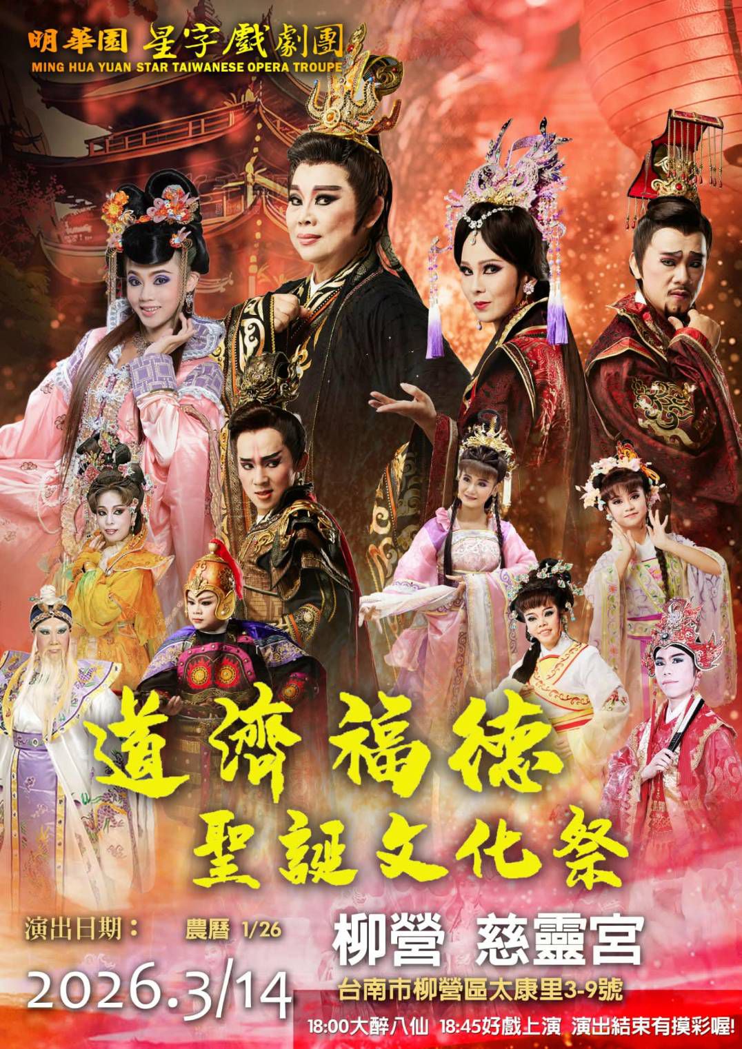 主辦單位誠摯邀請民眾在3月14日(週六) 蒞臨柳營慈靈宮,一同參與這場融合 宗教信仰、文化藝術、親子互動與公益宣導 的文化盛會,在歡樂與祝福中共度一個充滿文化氣息與人情溫度的週末。