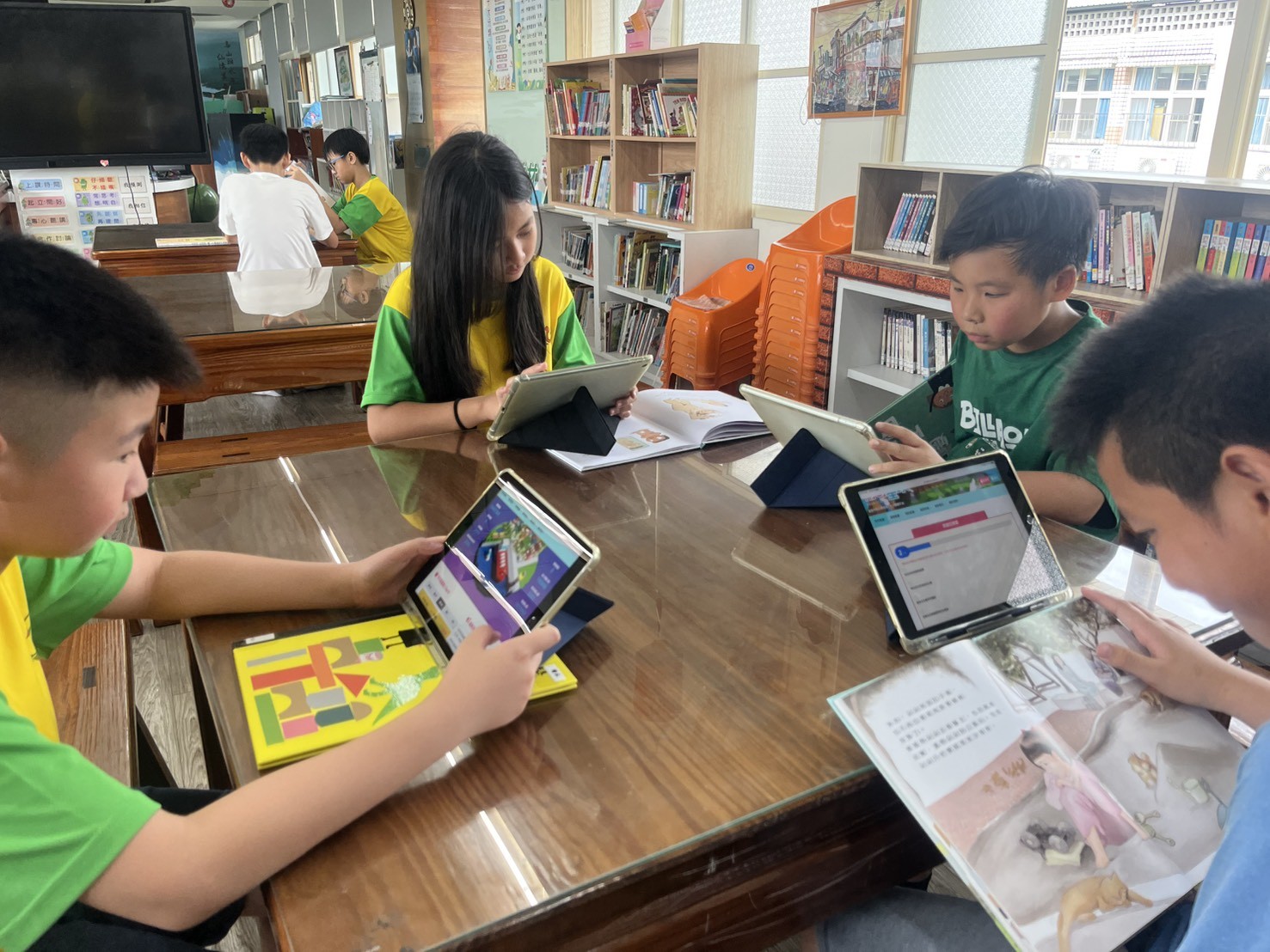 ▲官田國小學生進行閱讀平台闖關。(教育局 提供)