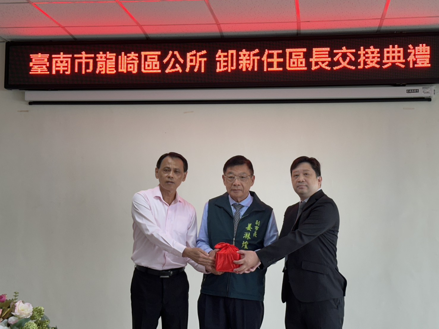 副市長姜淋煌今(13)日也親自前往龍崎區公所主持新任區長監交典禮,肯定陳新澈區長在任期間的努力與貢獻,並勉勵新任區長陳龍政秉持務實精神,持續深化地方建設與民政服務,讓市政能量更向下扎根,持續提升行政效能與服務品質。更期許各新任主管在既有基礎上持續精進業務推動,深化為民服務,同時強化團隊合作與創新思維,讓戶政與區政服務更加貼近民眾需求,展現市府施政的溫度與效率。