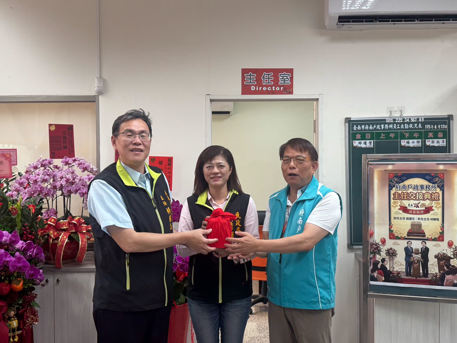這次異動中,原玉井戶政事務所主任林勝隆調任府南戶政事務所主任,承接原職務,持續推動戶政業務精進。玉井戶政事務所主任職缺,則由原仁德戶政事務所主任黃寶慶接任,期盼借重其豐富行政經驗,提升地方服務品質。