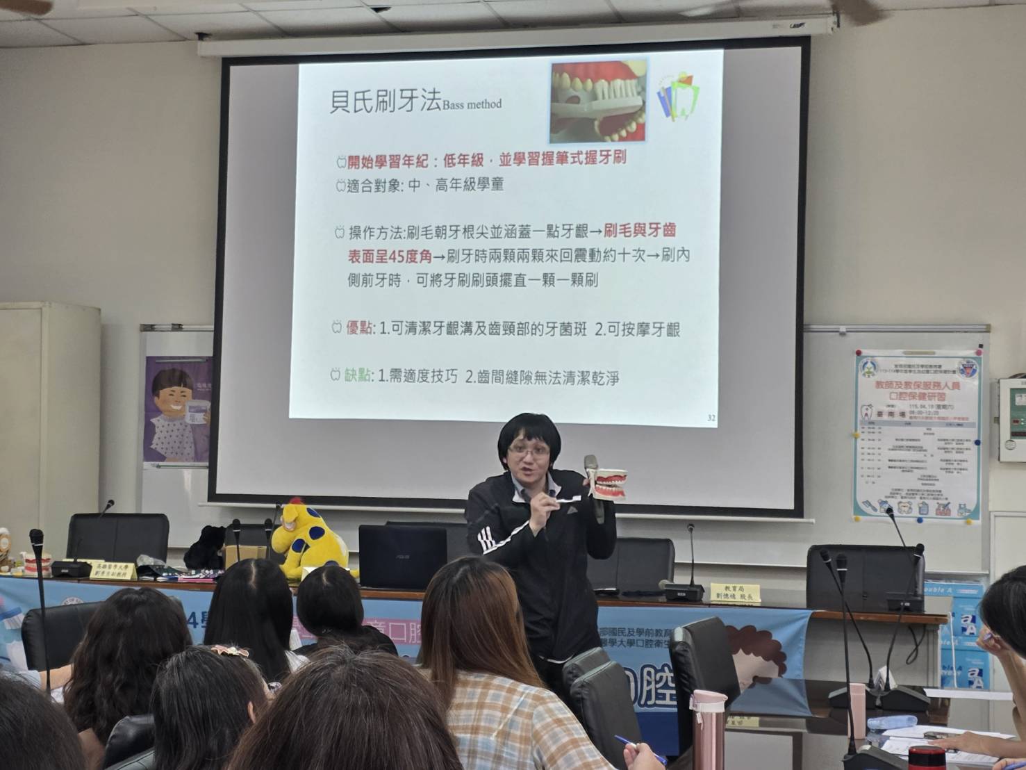 教育局長鄭新輝指出,本次以專業知能提升與課程融入實踐為核心,課程內容涵蓋學齡前幼童口腔健康概念、生命週期口腔保健策略、潔牙工具使用及實務操作技巧等,由高雄醫學大學口腔衛生專業領域教授進行指導,透過理論與實作並重的方式,強化教保服務人員對幼兒口腔保健的正確認知與教學能力,期許教保人員能將口腔保健知能融入日常課程與生活教育中,例如潔牙教學活動、健康主題課程及親師合作宣導,讓幼兒在自然情境中學習正確潔牙習慣與健康飲食觀念。