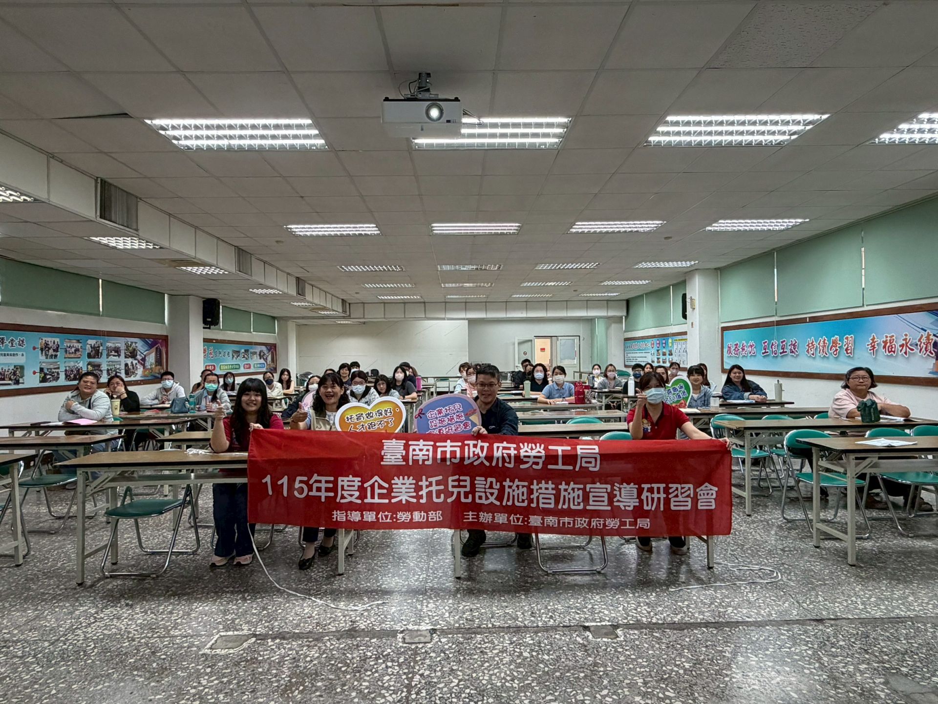 勞工局補充說明今(115)年研習會尚有4場次持續開放報名,歡迎至「臺南市政府勞工局網頁-便民服務-文件下載-115年度企業托兒設施措施宣導研習會報名連結」報名參加。
