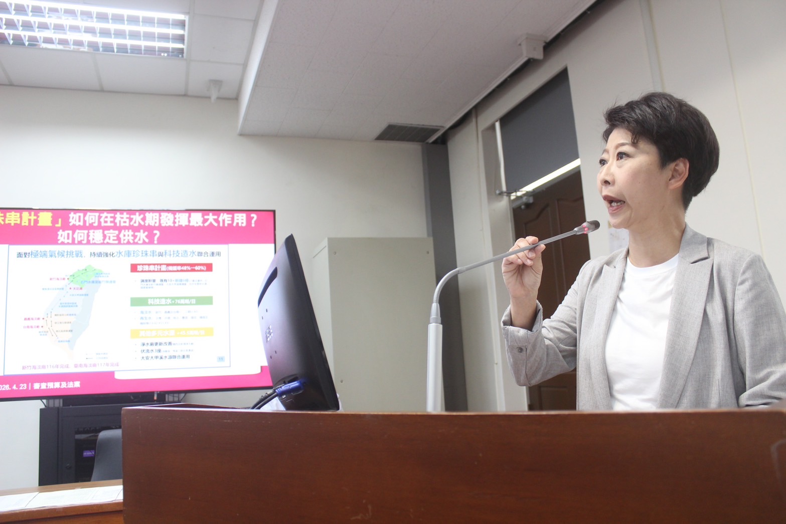 陳亭妃在質詢中拿出數據對比,指出目前雲嘉地區水庫尚有約 30% 存量,但台南地區的情況卻已跌破安全紅線,特別是支撐在地農業與民生的白河、曾文兩大水庫,蓄水量雙雙低於 18%。陳亭妃質疑,面對如此嚴峻的乾旱預兆,台南地區的水資源到底還能撐多久?她強調,政府必須未雨綢繆,應優先盤點現有調度機制與每一滴珍貴的水資源,避免未來可能的限水措施傷及基層農民、在地產業與最重要的民生用水的正常運作。