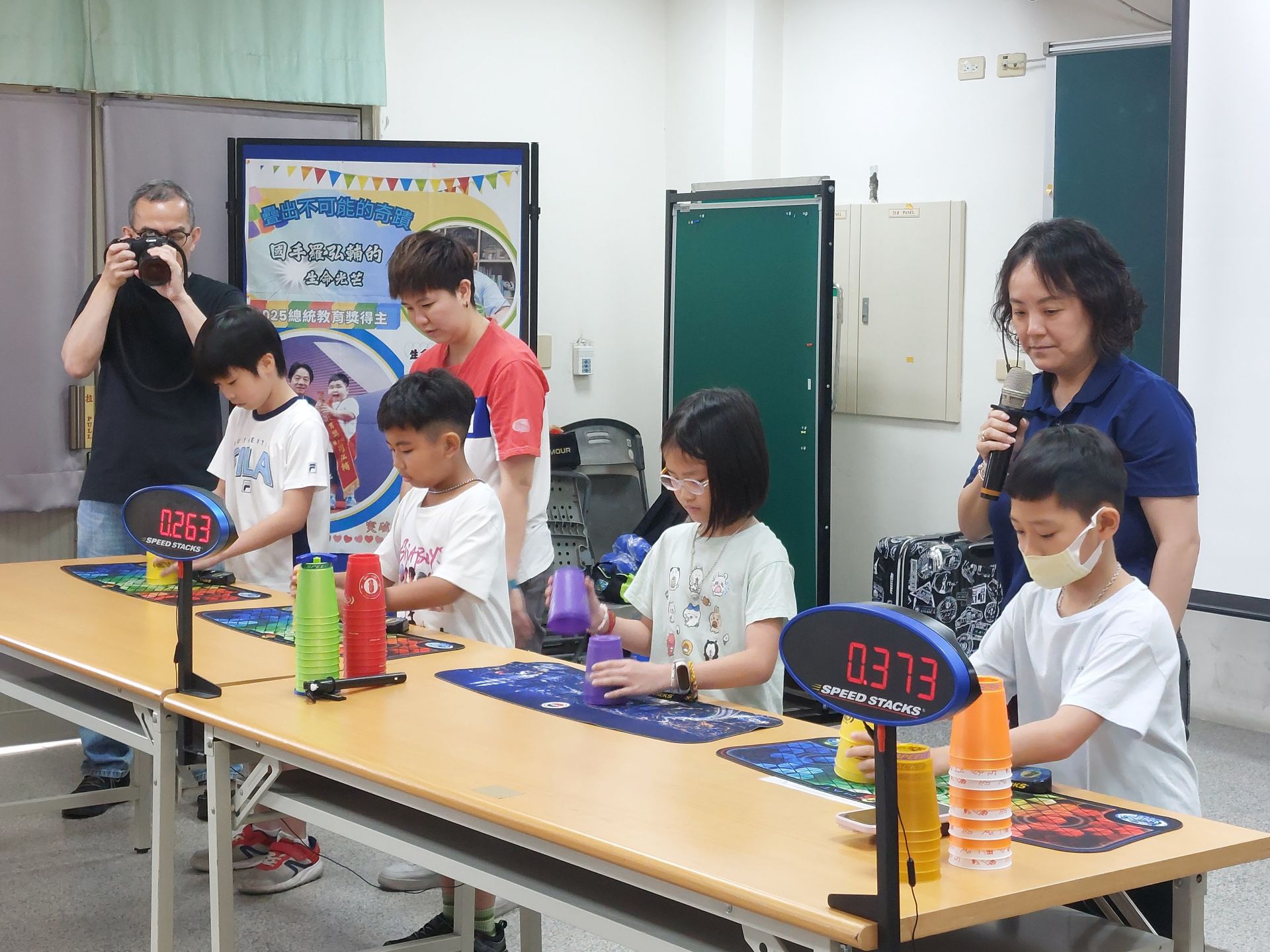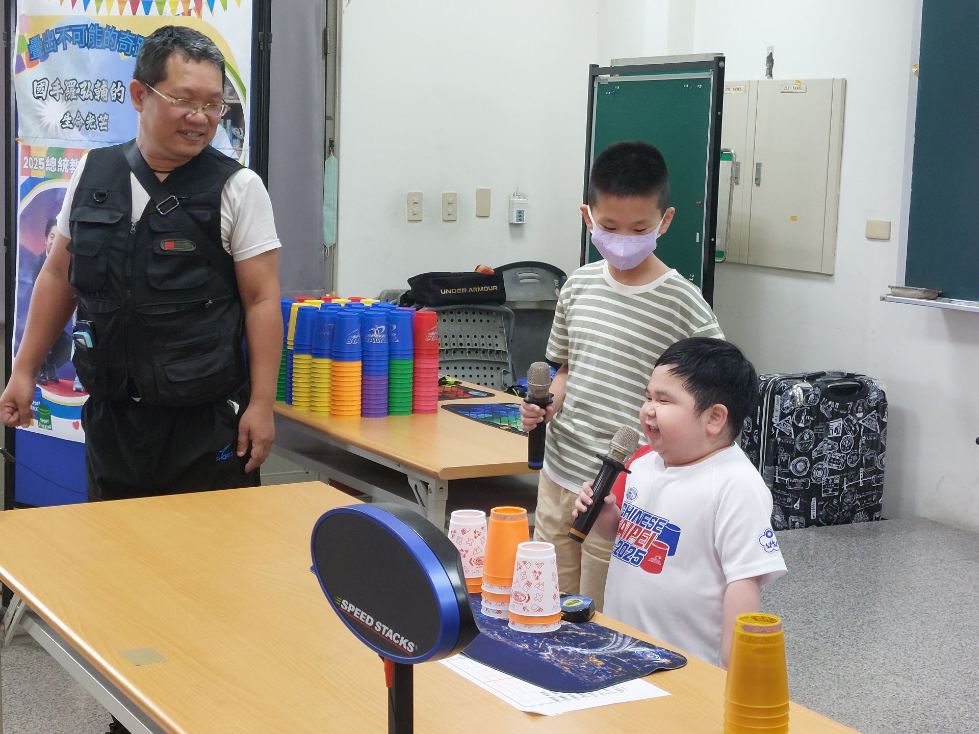 活動也在孩子心中留下深刻印象。二年級學生楊同學表示:「羅弘輔哥哥得到罕見疾病,肌肉會流失,但他沒有放棄喜歡的疊杯運動,我覺得很不簡單。」邱同學則說:「每個人厲害的地方都不一樣,我以前踢足球不太會,但打羽球學得很快,我喜歡那種速度感,也很有成就感。」值得一提的是,活動結束後回到教室,二年級的洪同學主動拿起班上的「快手疊杯」練習,展現高度興趣與行動力,顯見一顆種子已悄然在孩子心中萌芽。